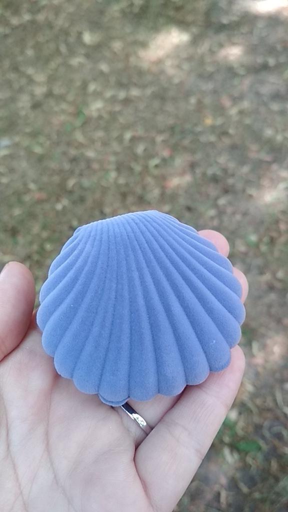 Синяя коробочка в виде ракушки,сделано аккуратно,без дефектов.упаковано в картонную коробочку.продавца и товар рекомендую🥰🥰🥰