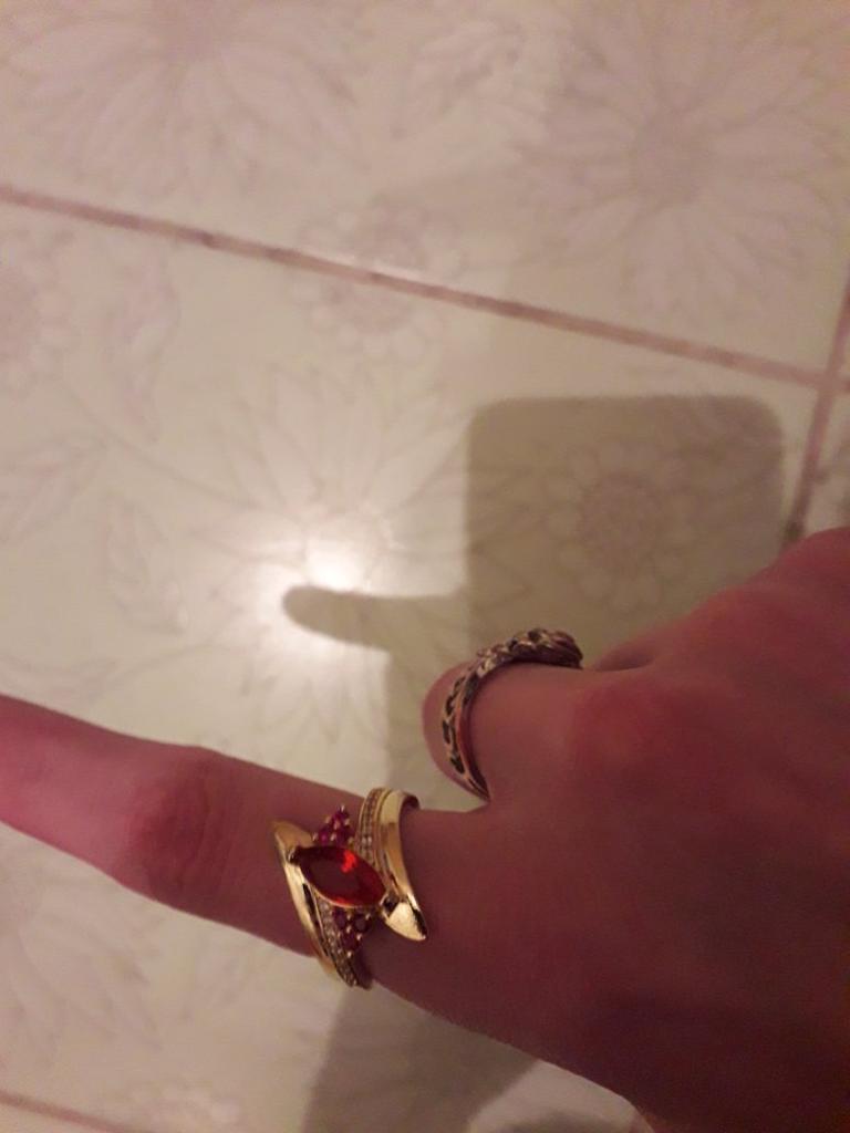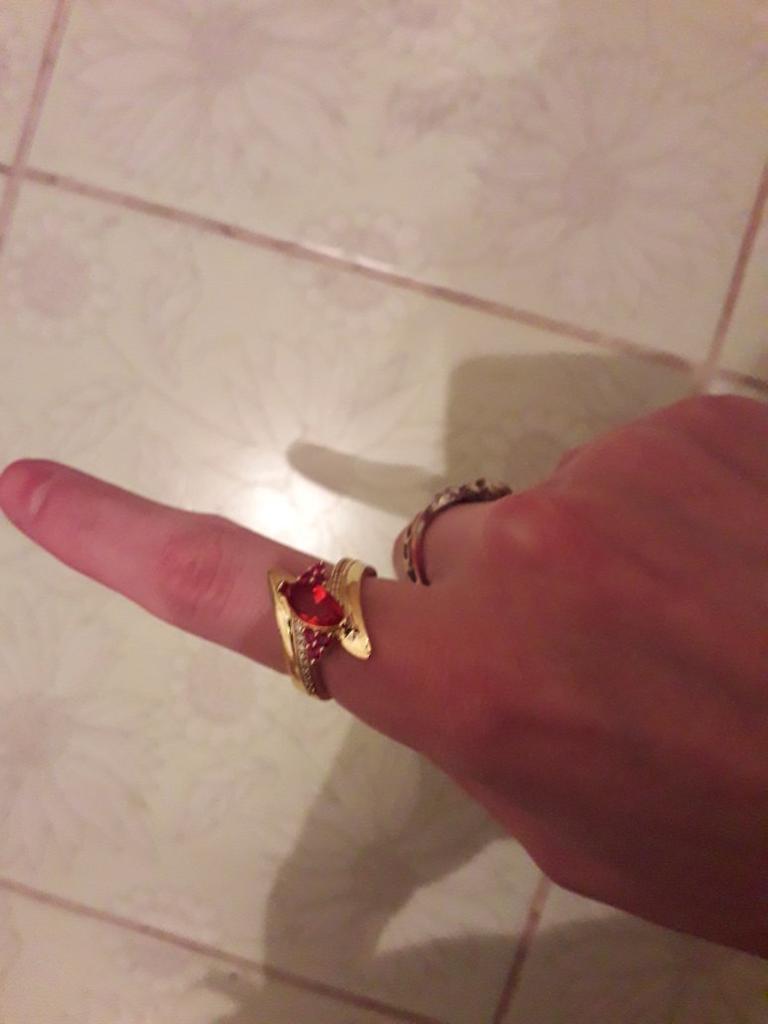 Кольцо прекрасно. Камешек яркий, словно огонь. Нравится очень. Раньше такое синее заказывала были косяки. А это прям как родное, и село идеально. Единственное, на картинке оно чуть темнее, более в гранатовый оттенок - но мне вполне подошло под нужный образ.