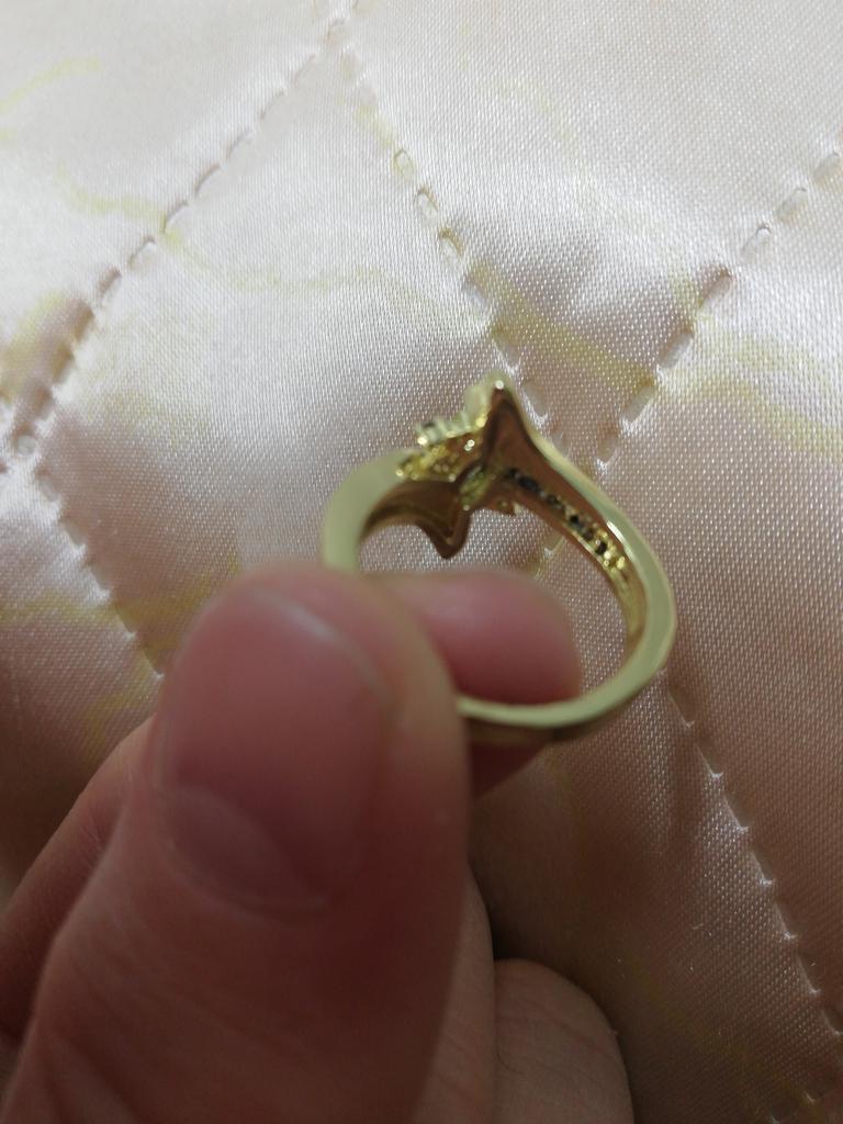 Красивое кольцо, сделано под лимонное золото. Исполнение аккуратно, камни вставленны ровно, цапки загнуты, не торчат, держат камни. Качество очень хорошее. Для разнообразия можно поносить, даже не важно потемнеет или нет. Но как бижутерия не выглядит!!! На 16 размер брала 6,подошло отлично.