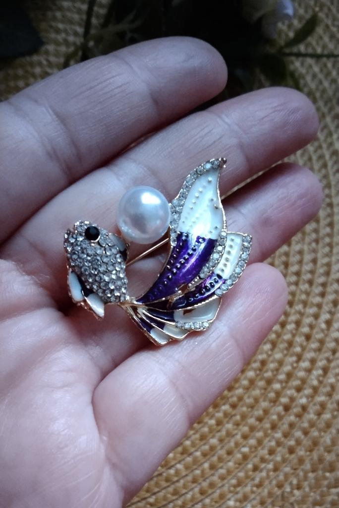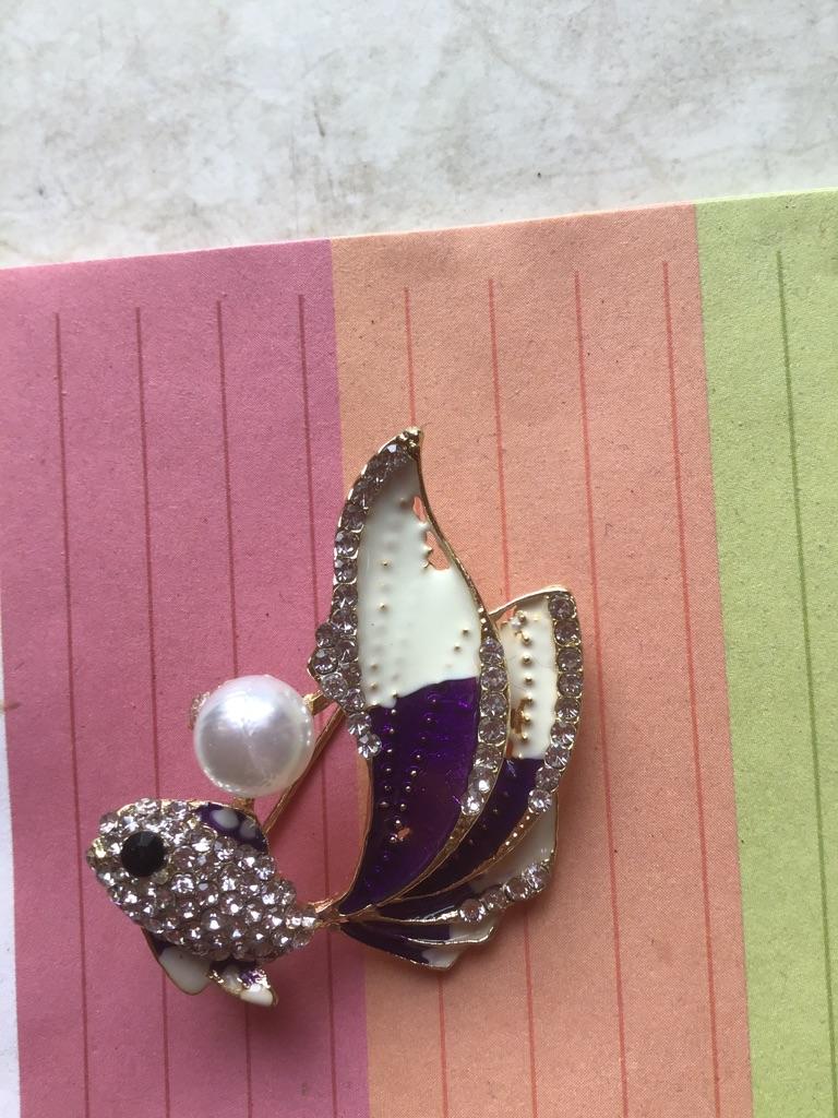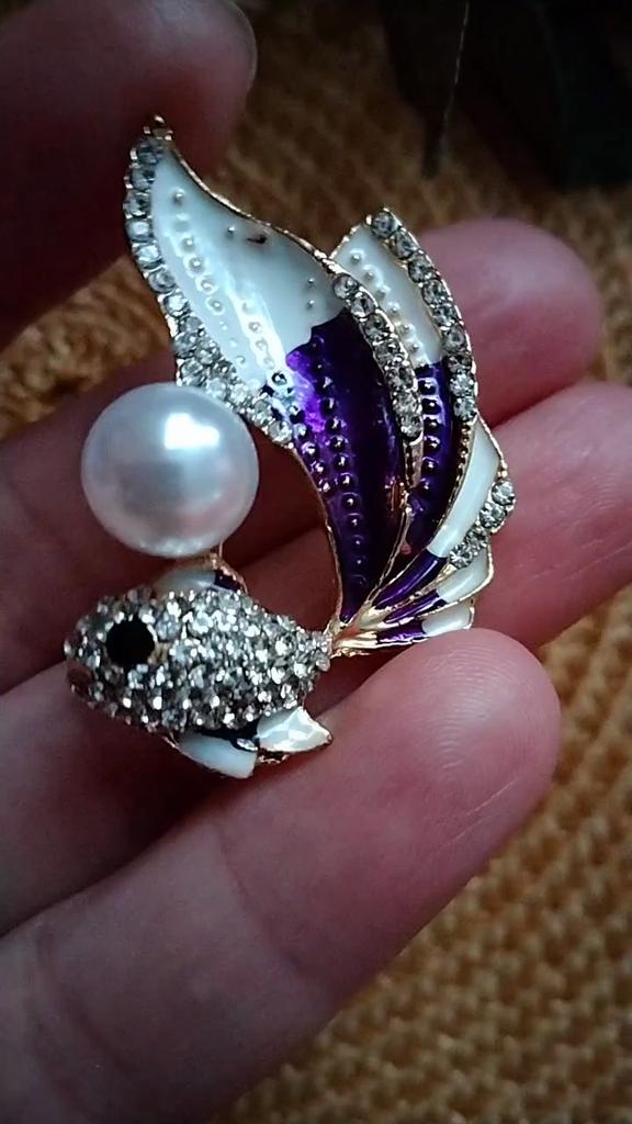 Брошь золотая рыбка🐟🐠 🐟Не менее красивее предыдущей броши, очень красивая 🐠 Аккуратное исполнение, все камешки на месте 🐟 Моя с фиолетовым оттенком, очень интересная 🐠 Можно как для себя, так и на подарок приобрести Я покупкой очень довольна, добралась рыбёшка в течении месяца, упакована в воздушный конверт. Посылка была сборная. Продавцу большая благодарность за превосходное украшение 💐 Всем отличных покупок, а лето пусть радует своим ярким солнышком ☀️⛱️🍹