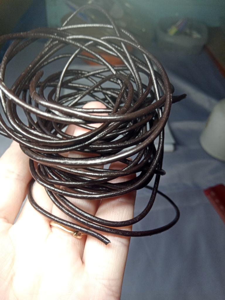 Пришёл очень быстро. Шнурок крепкий, без повреждений, есть небольшой запах. Горит не очень и чем-то реально напоминает натуральную кожу. К слову, очень сначала расстроила толщина в 2 мм, ибо завязать узел проблематично - лучше тогда тоньше брать, либо уже какие-то крепления. Но потом разобралась. В общем, вещь безумно годная.