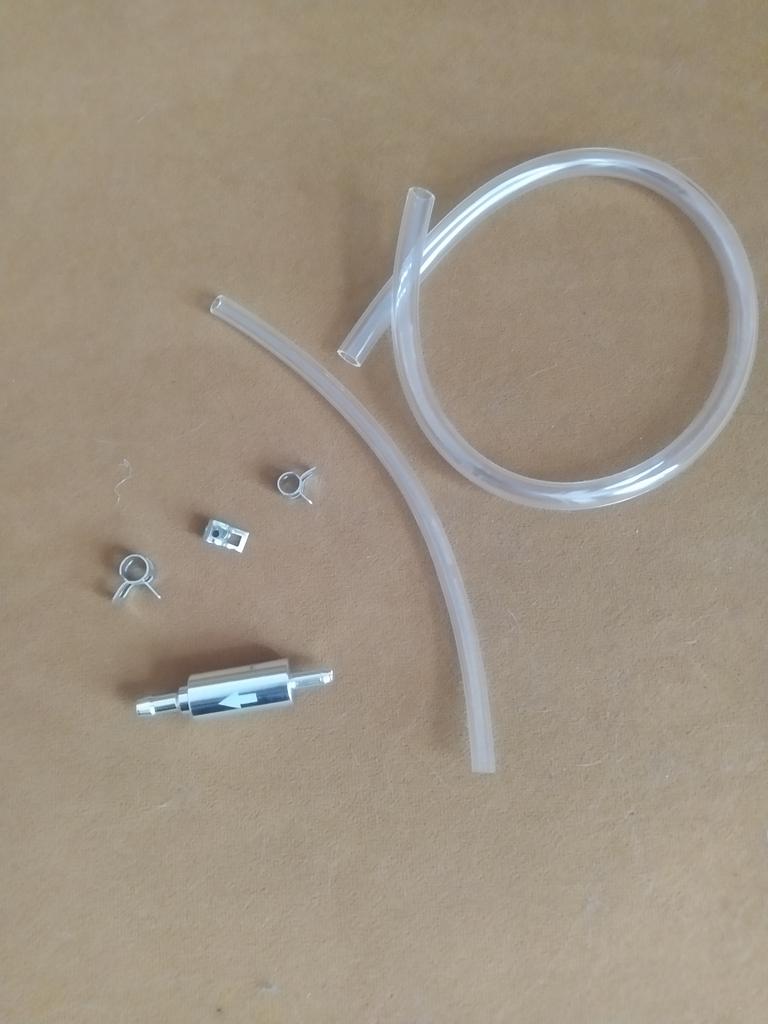 Доставили во Владивосток примерно за месяц. Клапан не работает. Внутри шарик и пружинка. Привалочная поверхность для шарика внутри клапана с огромным заусенцем. Придётся дорабатывать напильником. В комплекте два шланга разного калибра и три хомута под них. Выход из клапана больше чем вход, если это кому то важно