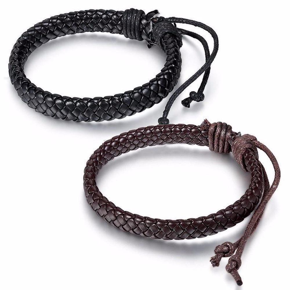 Кожаный плетёный браслет