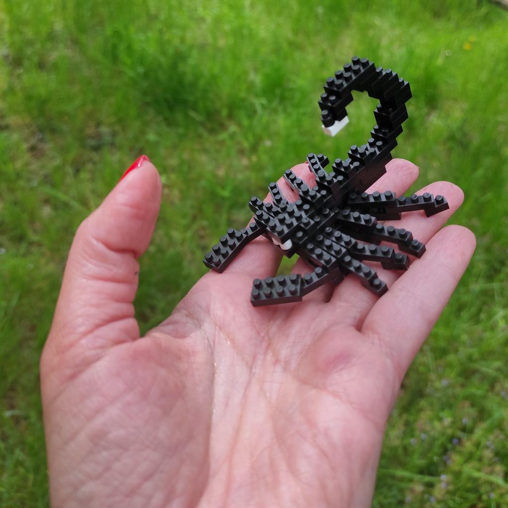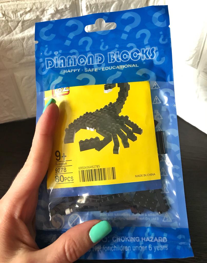 Модель 🦂 скорпиона Конструктор из 80 мелких деталей . Размер их можно сравнить с моей рукой на второй фото. Приятный вечер с собиранием этой мини-модели вам обеспечен 😉 На упаковке стоит возраст 9+ Сыну 3, поэтому , естественно без нашей помощи не обошлось )) Детали из качественного пластика 👌🏻 В упаковке было нужное количество деталей . Все замечательно, продавцу спасибо от всей нашей семьи 👍🏻 Доставка, кстати , как всегда быстрая 🔝