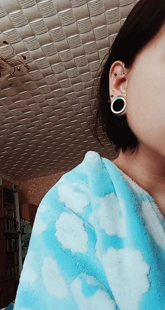 Мега долгая доставка. Месяц до России и месяц в России.. Заказала 5.11.19. пришел 6.01.19. Бросили в почтовый ящик. Заказывала ещё пару цвета другого, видимо придет отдельной посылкой. Печаль... А теперь о хорошем) Визуально качество отличное. Резьба ровная. У меня аллергия на окисляющиеся металлы-посмотрим будет ли на тоннели реакция. Позже отзыв дополню. Дополняю, как и обещала. Прошло 12 часов и аллергии не видно. Если появится-напишу.