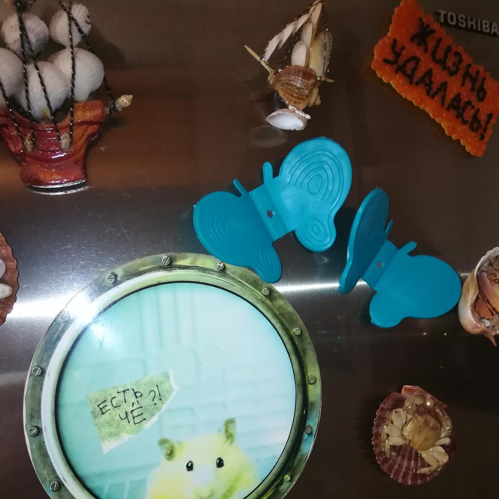Бабочки- хваточки очень понравились! Пользоваться удобно, сидят прямо на микроволновке, чтоб были под рукой. Да, магнитик слабоват, но если располагать по вертикали, то держит. Неожиданно яркое и радостное маленькое пятнышко в моем интерьере:). Особую радость доставил цвет! Выбрать же нельзя, а очень не хотелось получить голубые, совсем не моё, но повезло. Спасибо продавцу !