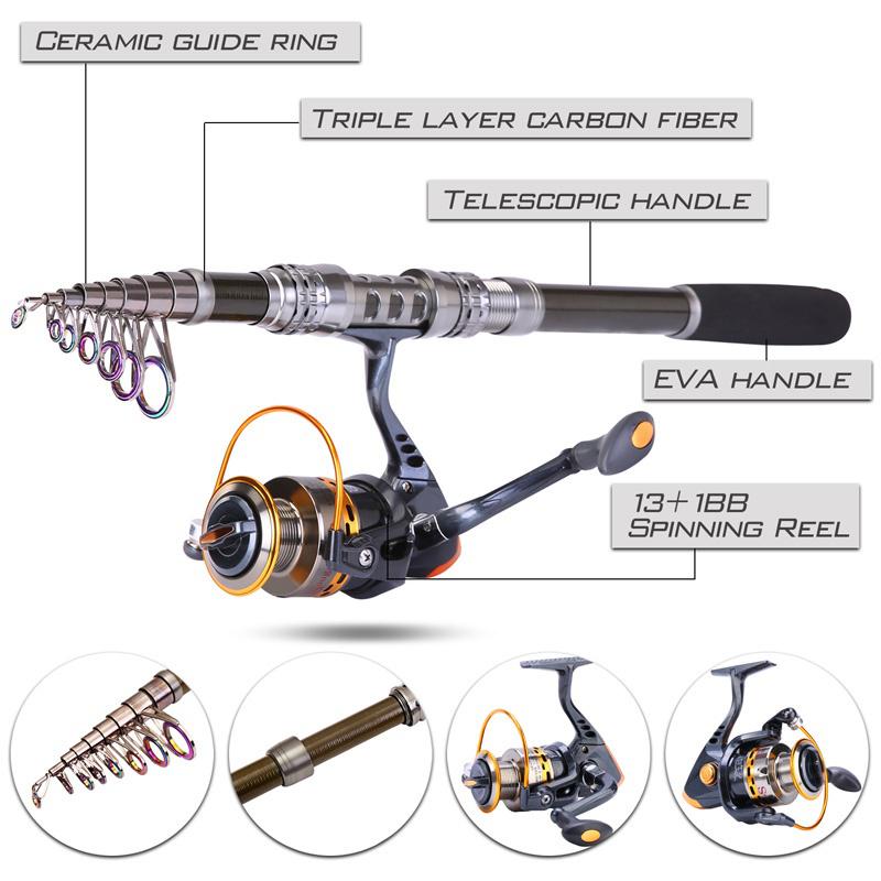 Удочка: Открытая длина: около 2,1 м / 6,89 фута, Закрытая длина: около 41 см / 16,14 дюйма, Вес: около 195 г / 6,88 унции.