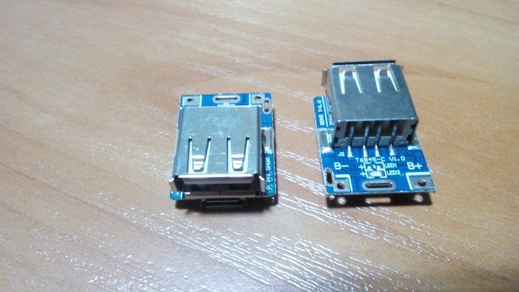 В пакете 2 шт. Оба рабочие. Мигает красным при получении и отдаче энергии. Мигает красным пару раз и гаснет если заряд батареи меньше 3,3 Вольта Автоматически отключает отдачу энергии если батарея разрядилась до 3,3 Вольта Ток заряда: 0,86 Ампер При заряде АКБ сильно греется микросхема. Температуру изменить нечем, но палец удержать на нём невозможно.