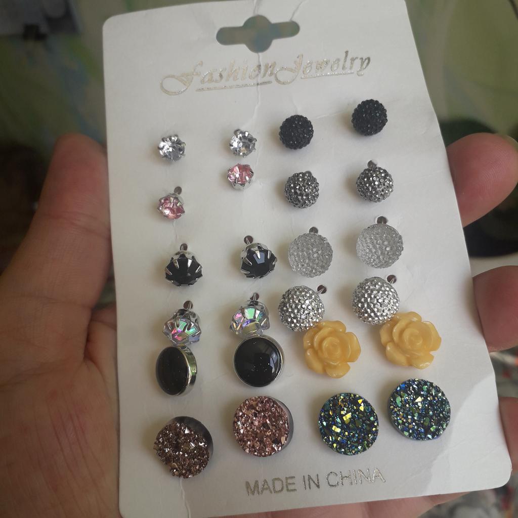 Товар пришел , посылка была помята , доставка долгая,почти 2 месяца , Сережки всё в комплекте,всё суперское, но качество трех пар оставляет желать лучшего, не как на картинке, особенно последние две пары сережек , виден клей ,и блестки цепляются,никак не обработаны,на фото лучше . Но и стоит недорого,в принципе можно заказывать)