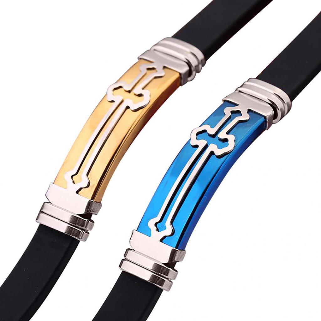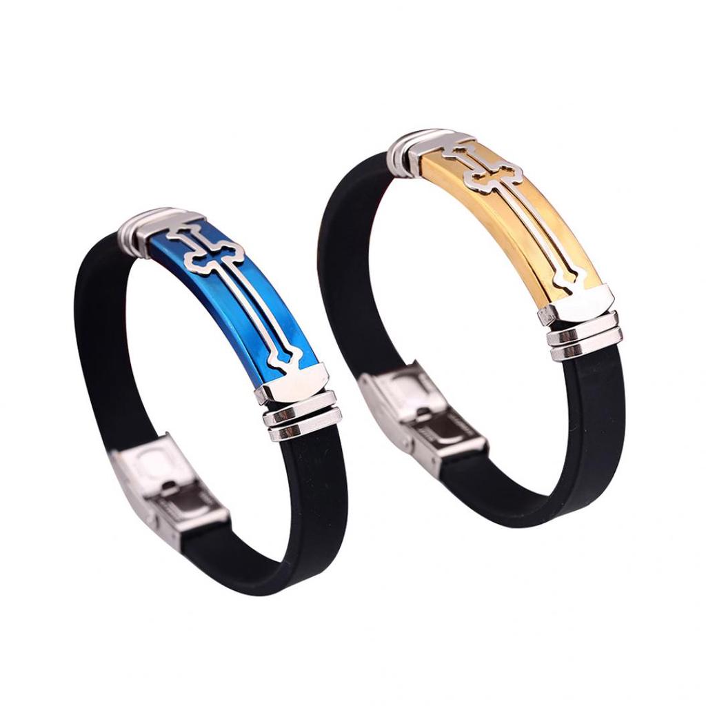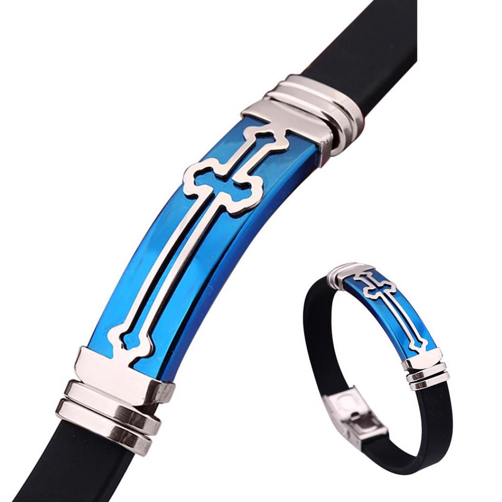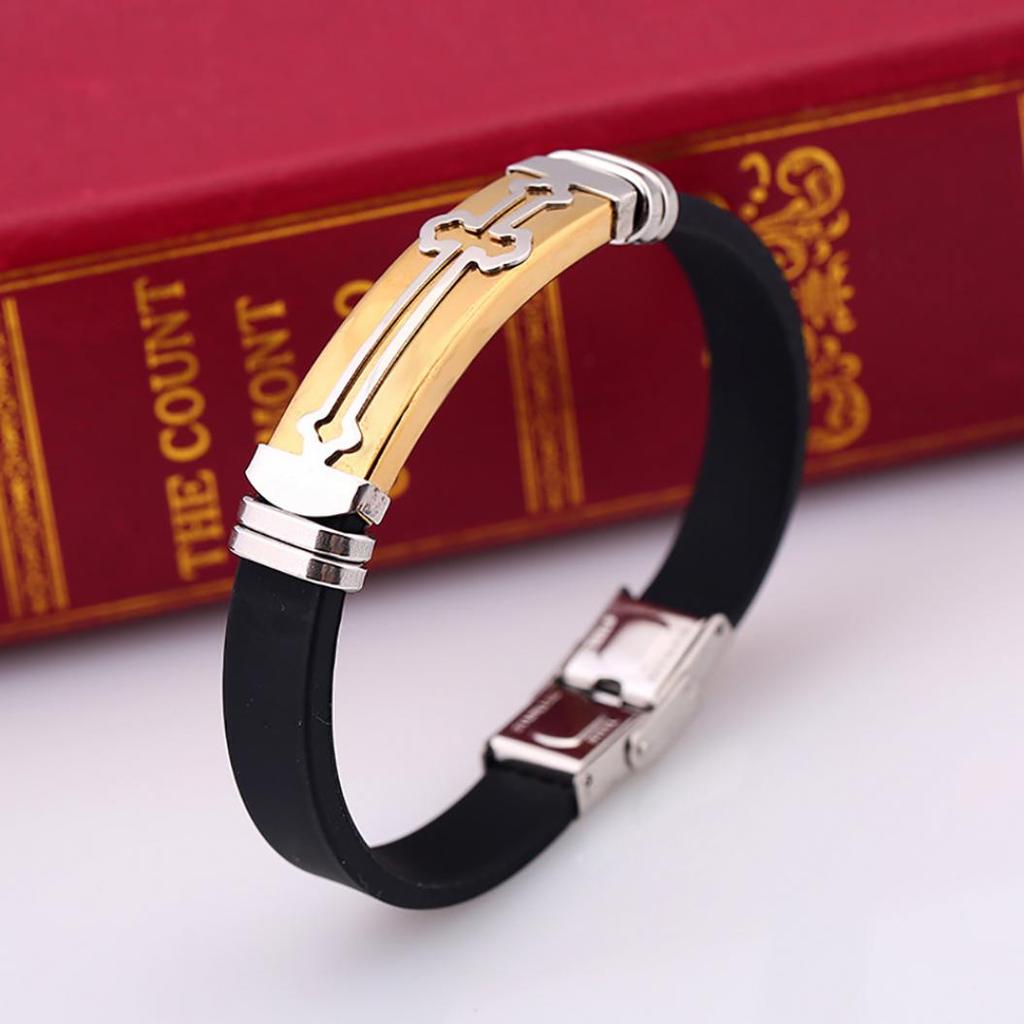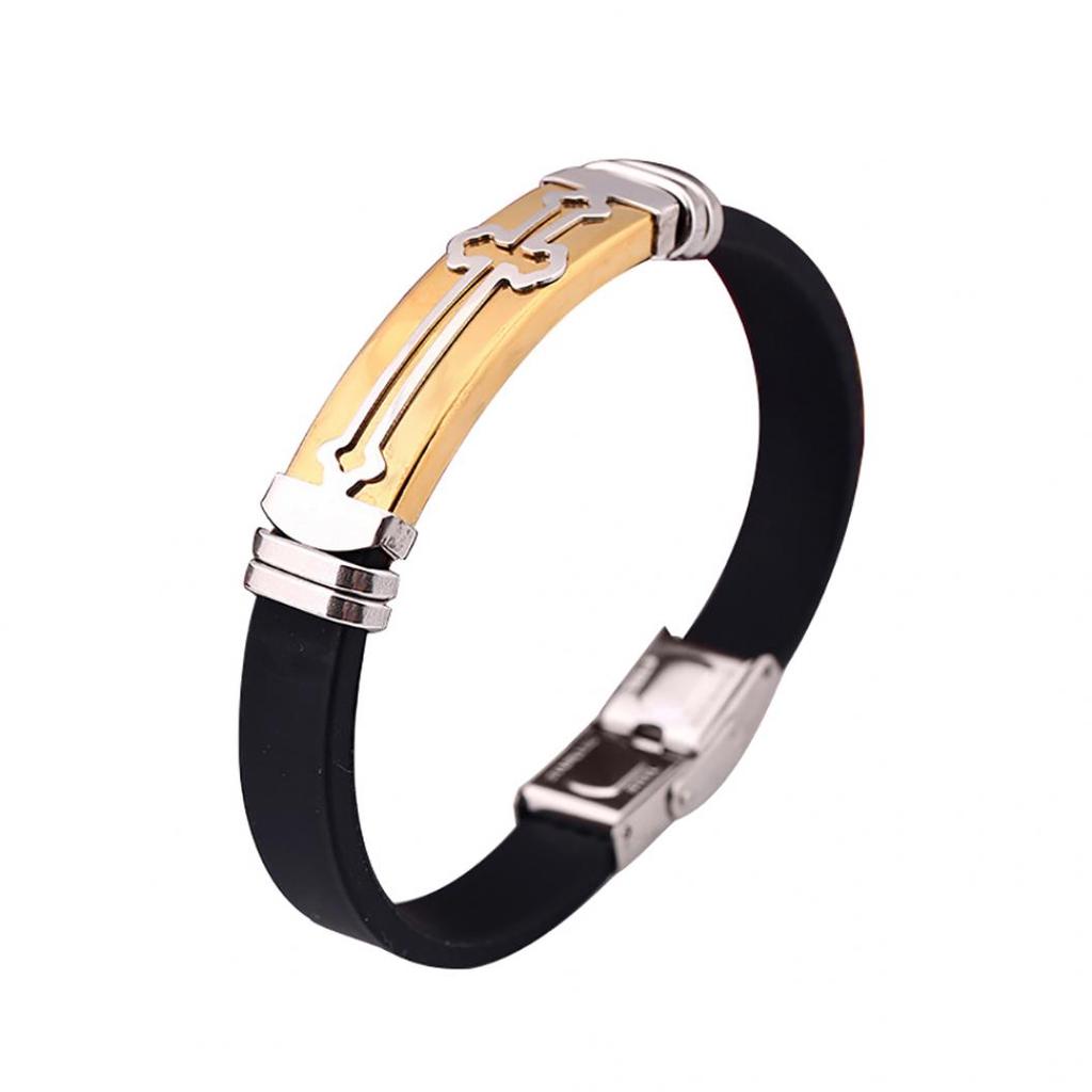 Мужской силиконовый браслет с металлом