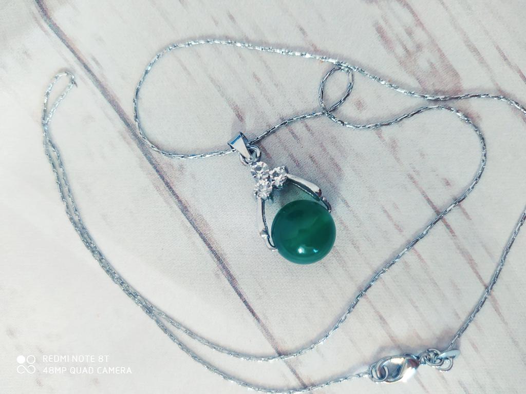 Красивый кулончик💚 Кулончик, конечно, красивый, но не такой как на промофото продавца. 🙄На промофото кулончик полупрозрачный, а в жизни мутный и непрозрачный🤷♀️ Товар отличного качества. Цепочка хорошая, средней длины. Металл под серебро. Подвеска металл под серебро с серебряными стразами. Камушек вроде как натуральный, не пластмасса. Перекатывается и крутится на железке👍 Товар и продавца рекомендую. Посылка пришла до Тулы за 2 недели. Упакована в свой пакет и почтовый. Отслеживалась до конца. Если хотите читать такие же интересные отзывы о взрослых и детских товарах, подписывайтесь на меня, я буду рада😉