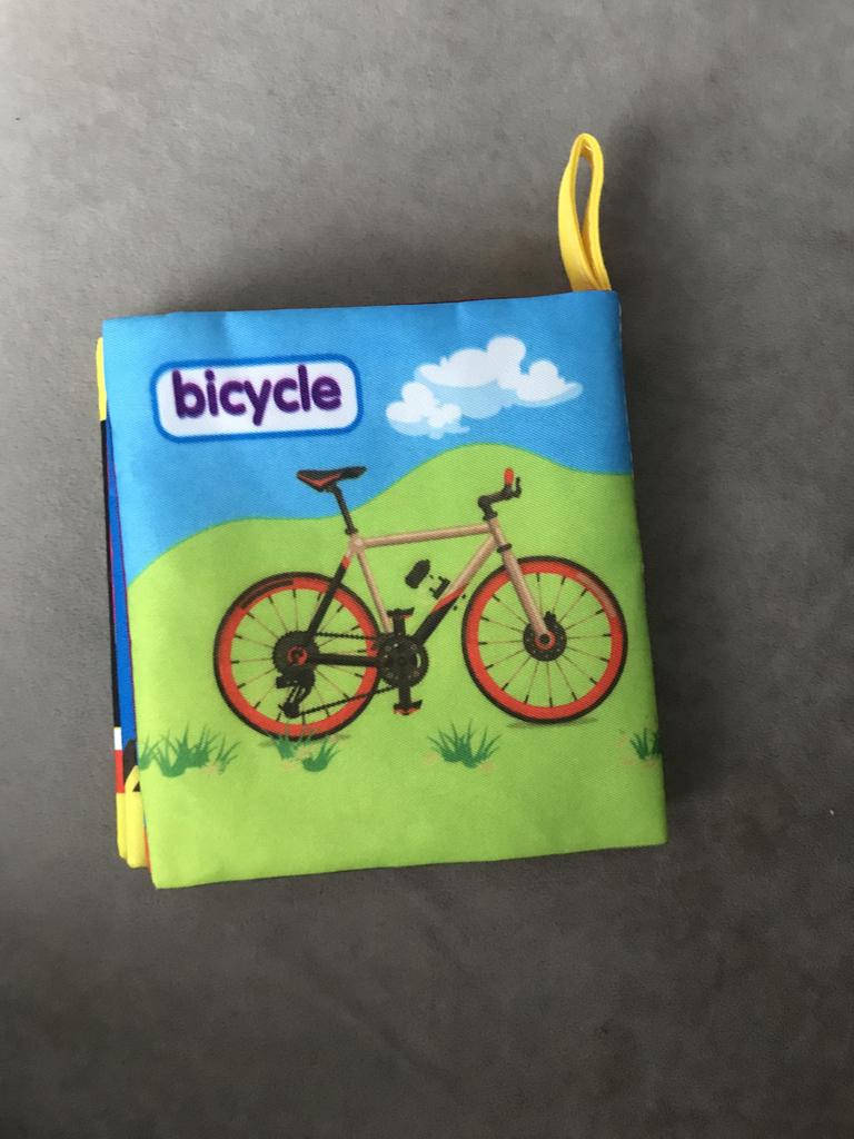 Заказывала 29.09, пришёл 08.11, положили в почтовый ящик. Книжка тканевая, внутри каждой страницы шуршалочка. Название машин на английском, впринципе другого языка и не ожидала. По размеру думала, что будет больше, по факту 11*11.