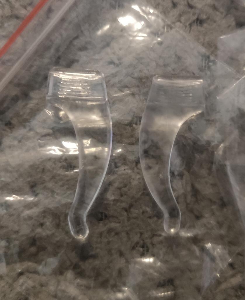 Видимо закончились черные и мне вместо одних прозрачных и одних черных прислали четыре пары прозрачных, но я довольна, т.к. мне не на солнечные, а на обычные очки. Очень удобно, очки по носу не скользят. Одела немного с трудом, т.к. в конце ушка утолщение, но зато они не слетят. Надевать с ними очки тоже не сразу наловчилась, когда надеваю, упоры торчат в стороны, когда надела, заправляю их за уши, они мягкие и легко поддаются манипуляциям. В процессе носки не чувствуются и не давят.