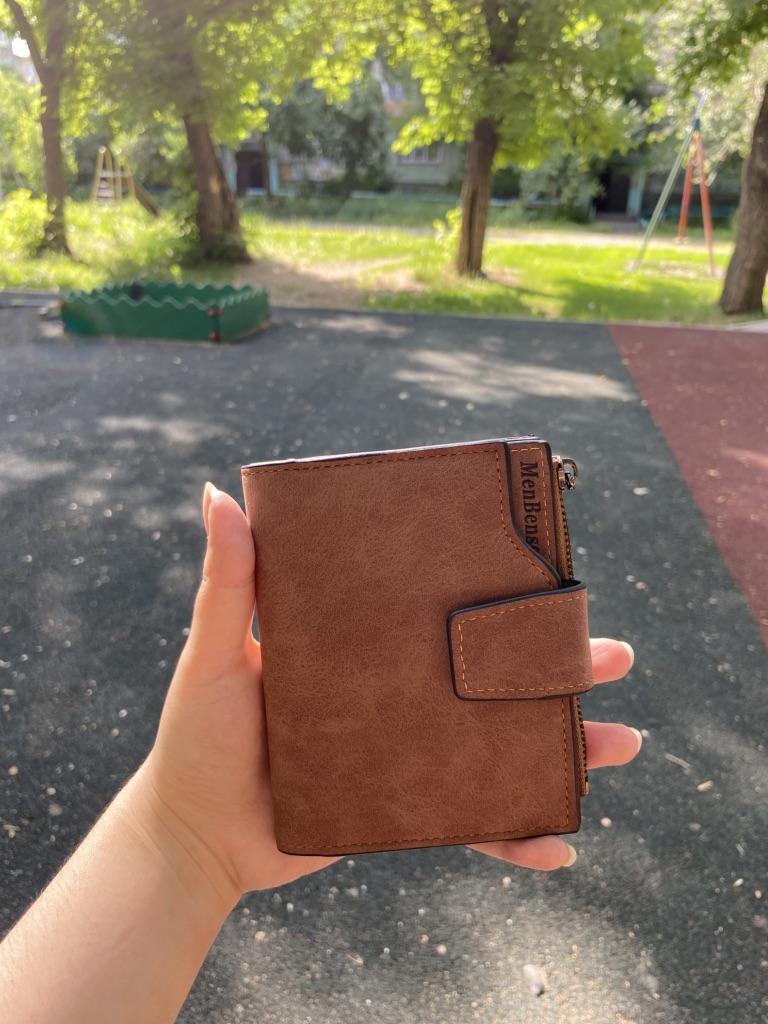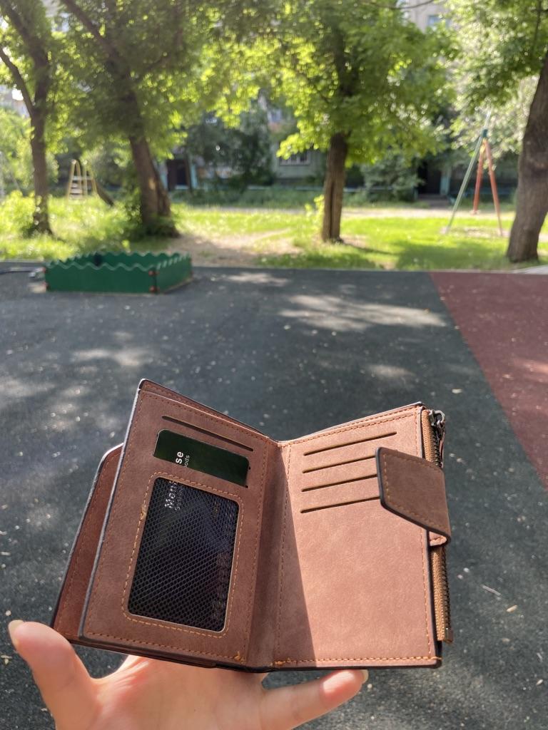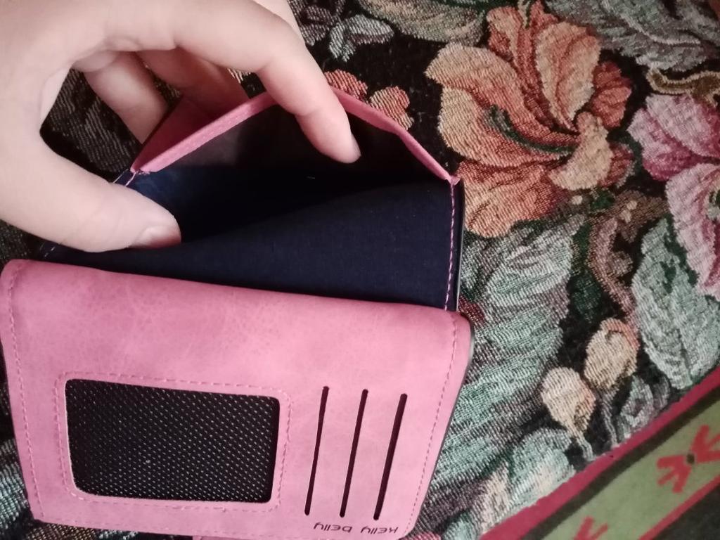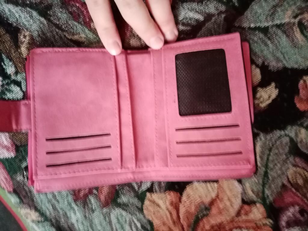 Я хотела немного поменьше кошелек, но и так сойдет, очень понравился цвет и материал, пришел без браков. Некоторые писали, что был клей в отделе для купюр, но у меня его нет, только шев немного не аккуратные, но за такие деньги простительно. Также мне нравится что много отделов под карты, т.к я думаю что я не одна девушка, у которой много карточек. Молния хорошая, не думаю что сломается, отдел под монеты маленький, но думаю мне его будет достаточно. Шла посылка очень долго, больше месяца, это большой минус