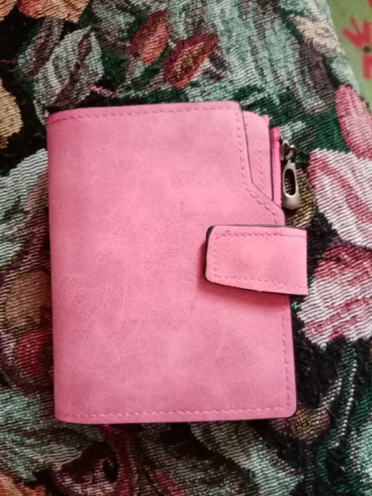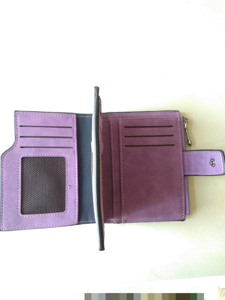 Получила сегодня свой заказ , кошелек короткий 12,5 см.Фиолетовый цвет. Очень приятный на ощупь , на велюр похож , можно поместить 12 карт , большой отдел для купюр денежных. И много куда можно всякие записки , памятки положить . Я даже не ожидала , и не раздувается. И отдельно есть к нему с боку монетница на замочке , на молнии. И когда я получила не смогла открыть молнию на монетнице в кошельке , мучилась , мучилась и решила написать в службу поддержки , что так и так не открывается монетница отдел этот , где хранится мелочь , но потом , начала туда сюда двигать замочком от молнии и вверх начала тянуть замочек и открывать пробовать и так все же попотела , но стал открыватся , может еще разработается .Надо приспособится и получится. Нужно тянуть вверх и открывать молнию. А сам кошелек на кнопке . Купила за 449 руб. Кошелёк очень приятный на ощупь в руке . Очень вместительный , хотя и маленький. Джумму Спасибо!!!!