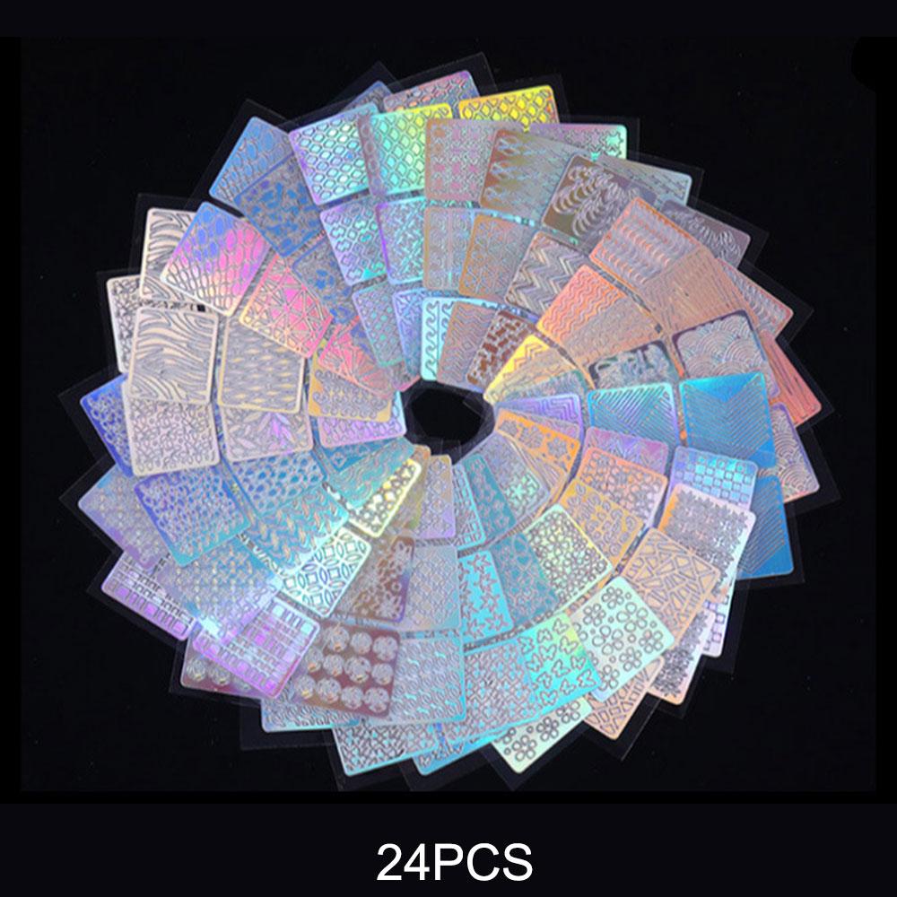24 шт. полая лазерная наклейка для ногтей, гель-лак для ногтей, трансферная фольга, сердце, звезда, 3D шаблон для ногтей, штамп