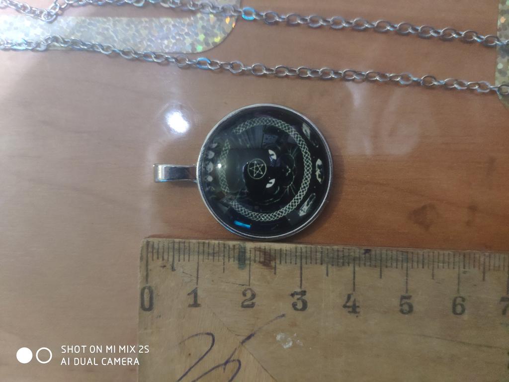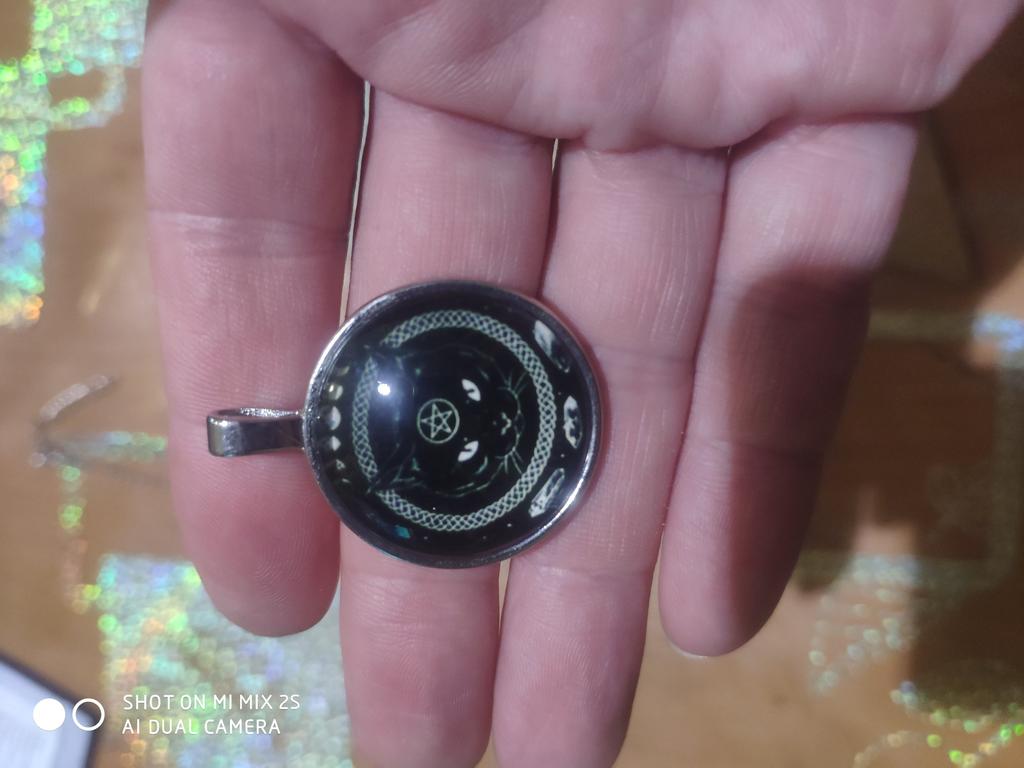 Кулончик красивый. Только рисунок немного кривоват. Не по центру, а сдвинут чуть левее. На цепочке отсутствует кольцо, за которое должна цепляться застёжка. Но не глобально. Цепочку можно поменять на шнурок. А к картинке можно не присматриваться