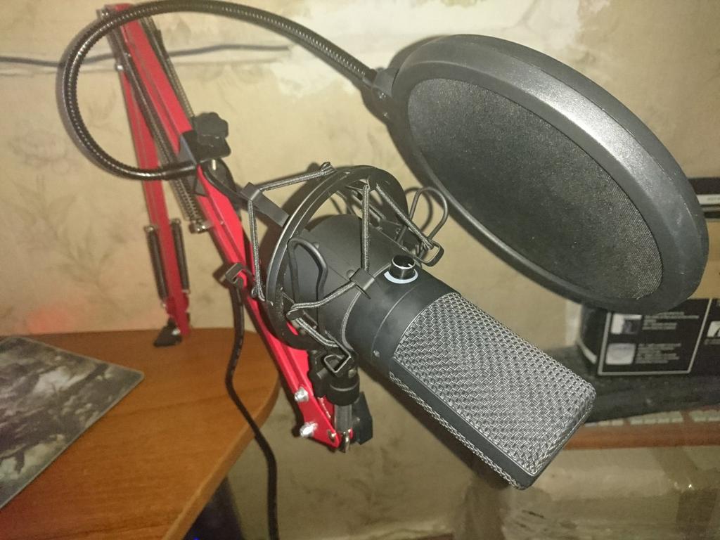 Качество отличное. На фото микрофон FiFine K669, диаметр 47 мм. Вошёл на пределе возможностей. Микрофон тяжёлый, но резинка справляется.