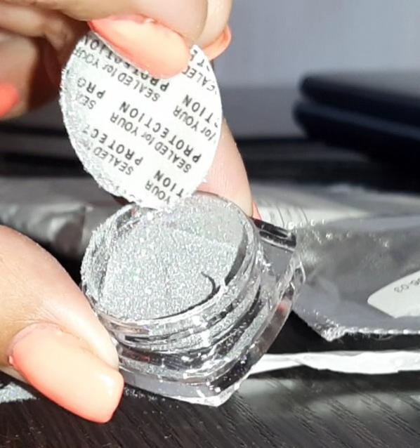 Очень красивые блёстки "втирка", на ногтях смотрится великолепно, правда её очень мало и до гомельской области шло около 2 месяцов. Сначала ногти нужно покрыть бесцветным лаком, только затем можно наносить эти блёстки "втирку" , И сверху по желанию можно покрыть прозрачным лаком, что бы дольше держалось.))