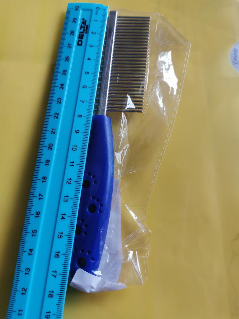 Крепкая расчёска, двухсторонняя, кончики зубьев не царапают. Брала для русского спаниеля, немного маловата размером, ино в целом всё подошло. Чешет аккуратно