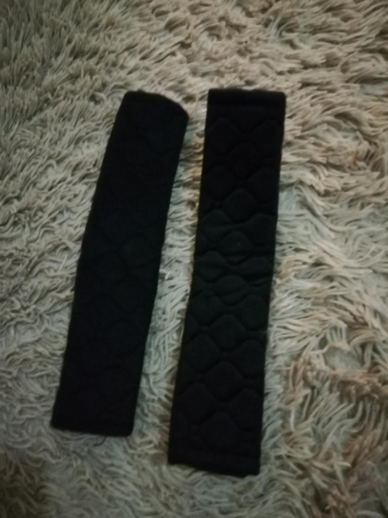 Накладки на ремень безопасности Брала для того, чтобы ремень не кошлатил одежду. Со своей задачей справляются. Материал мягкий, напоминает вилюр. В качестве пошива, конечно, есть косяки, но для такой вещи это не критично. Специально выбирала чёрные и без декора, чтобы не смотрелись наляписто. В застегнутом виде выглядят прилично, липучка хорошо держит, вещи не цепляет.
