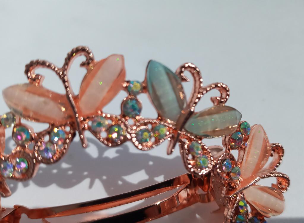 🦋Заколка для волос бабочки. 🦋Оригинальная и одновременно броская заколка . 🦋Выполнена из желтого металла , жемчужин в виде капли, и бабочек , инкрустированных камнями. 🦋Застёжка выполнена , если многие помнят это название " автоматик". 🦋Заколка не большая , на небольшое колличество волос. 🦋Размер заколки 6*4,5 см. 🦋Яркий акцент для моих тёмных волос. ✈️Доставка 4 недели в Польшу. 👍Продавца рекомендую. С наилучшими пожеланиями,Ксения