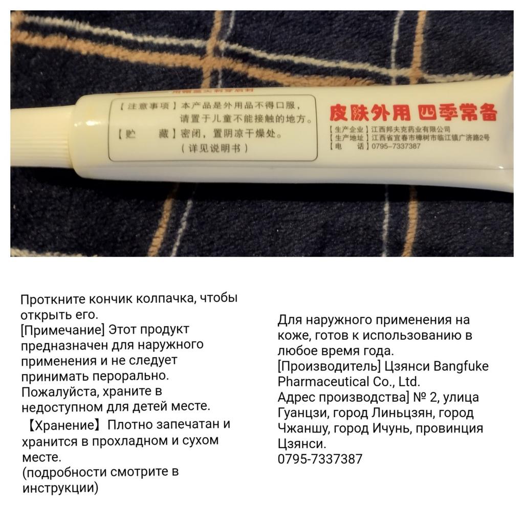 ♦️ Мазь♦️ Повторный заказ для знакомой 🤗 Когда получила первый раз, она сказала, что толку от неё нет, и вот попросила заказать ещё раз😂 Оказывается она стала применять её вместе с пантенолом( если не ошибаюсь в названии🤔) и результат её порадовал. Хоть и писали мне тут, что это подделка, и мазь должна быть жёлтого цвета, ну вот помогла же человеку. ✅Приходит в коробочке с вложенной внутрь инструкцией на китайском языке. ✅Тюбик, не просто заклеен фольгой, а герметически запаян. ✅В этот раз на коробке есть не только дата изготовления но и дата окончания срока годности 👍 ❗Учтите, что китайцы пишут дату наоборот, снала год, затем месяц и последней дату. ✅У продавца вес указан 15 грамм, на коробке 18 грамм🤔 Взвесила😜вместе с тюбиком вес 22 грамма. ✅Консистенция мази густая. ✅Цвет мази белый. ✅Запах звёздочки с примесью ещё чего то.... 💖Всем счастья и главное здоровья🥰
