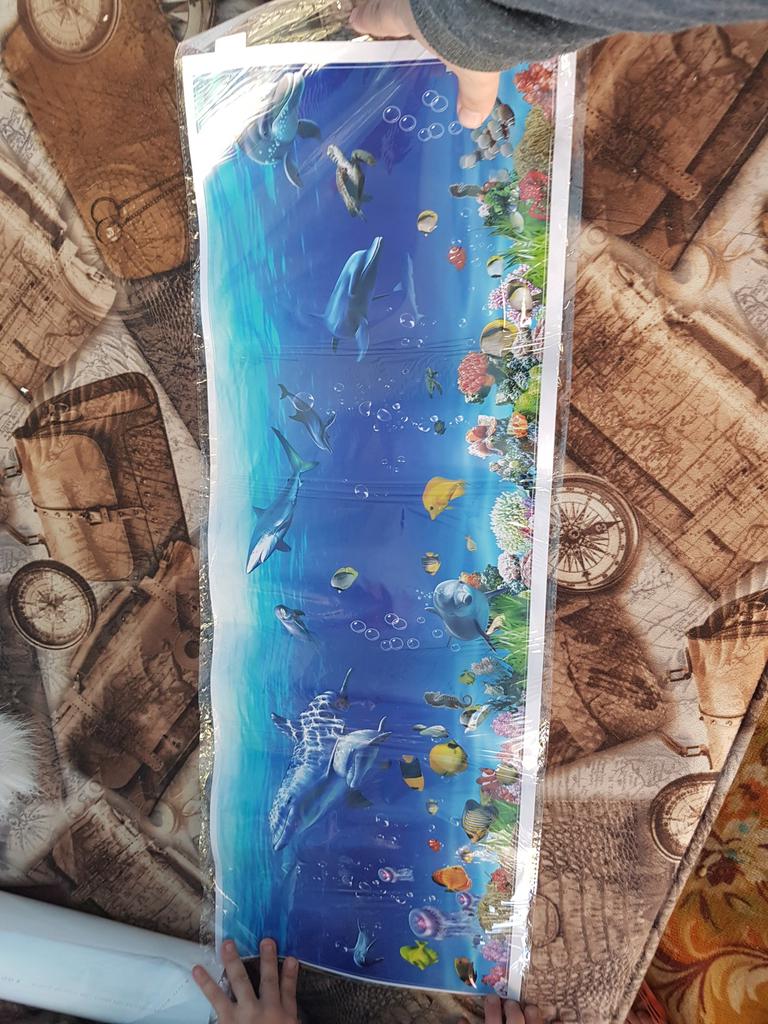 Пришлось ещё выписывать такую. У нас не большая ванна .,но по длинне не подошло. Буду ждать ещё такою же. Потом наклею, жалко если по яркости не подойдёт На рисунке ,по всей длиннее 🛁. О качестве напишу когда наклею..жду когда пройдёт продолжение... буду ✋️ ждать. Вчера наклейка. Все хорошо. Не много не хватило,на там висят мочалка. Если будите заказывать,то 3 штуки надо. Смотрится красиво и крайне мыть будет легко. .