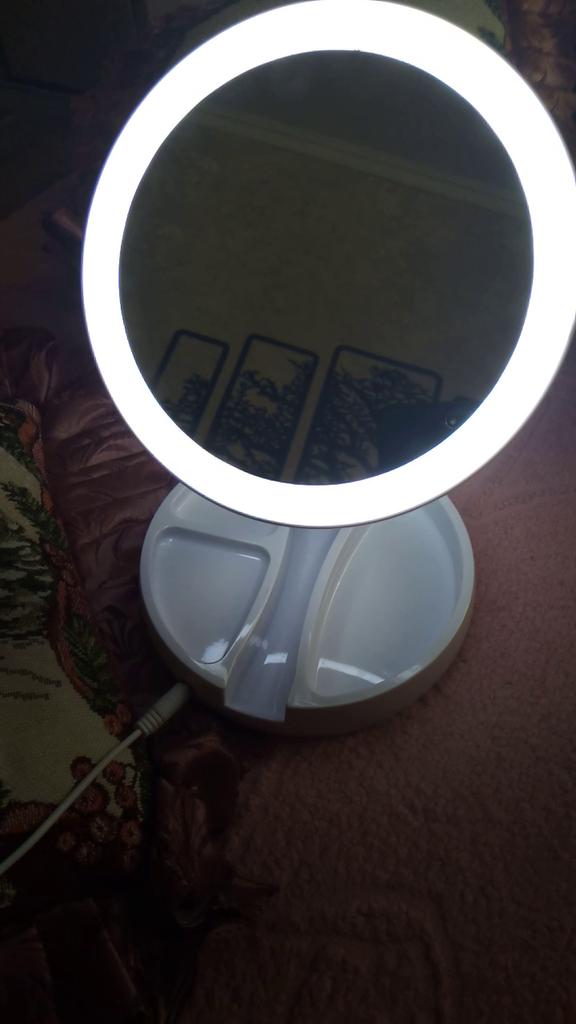 Зеркало не оправдало моих ожиданий, увеличение в 10 раз не соответствует действительности, подсветка не играет ни какой роли для лучшего обозрения лица, тк не светит в зеркало и на лицо, подсветка как ориол по кругу, достоинство только в том, что в ночное веемя может служить освещением помешения. Сам размер зеркала небольшой и нужно постоянно перемещать его или крутить, чтобы увидеть отдельные участки лица. В общем можно спокойно обойтись без него. Мое старое зеркало с 5-и кратным увеличением металлическое и с большим диаметром обзора напорядок лучше.