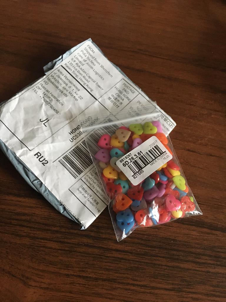До М.О. Доставили пуговки за 9 дней! О чудо!!! Я так быстро ещё ничего не получала. 👍👍👍👍👍Положили в почтовый ящик. Пуговки классные, яркие, лёгкие, без запаха. Заявлено 100, получила 99. Продавцу огромное спасибо!!! 👍👍👍 За качество, за быструю доставку, УМНИЧКА!!! 👍 😘💋💋💋 Всем рекомендую
