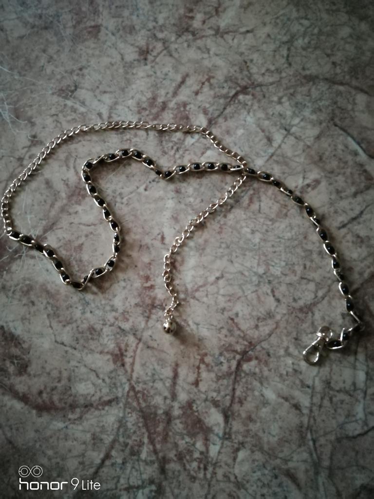 Vogue металлический тонкий пояс-цепочка с бусинами и завязками на поясе