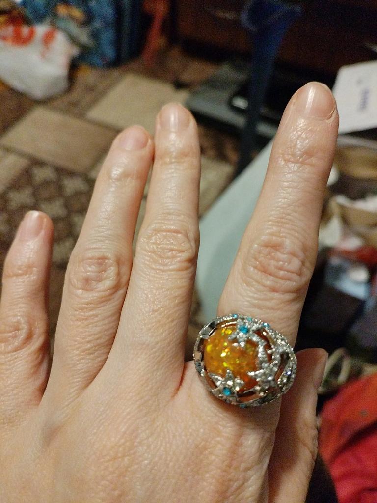 Кольцо пришло в целости, упаковано хорошо, все камушки на месте. Кольцо только для тонких пальцев или мизинца ( в моем случае ).