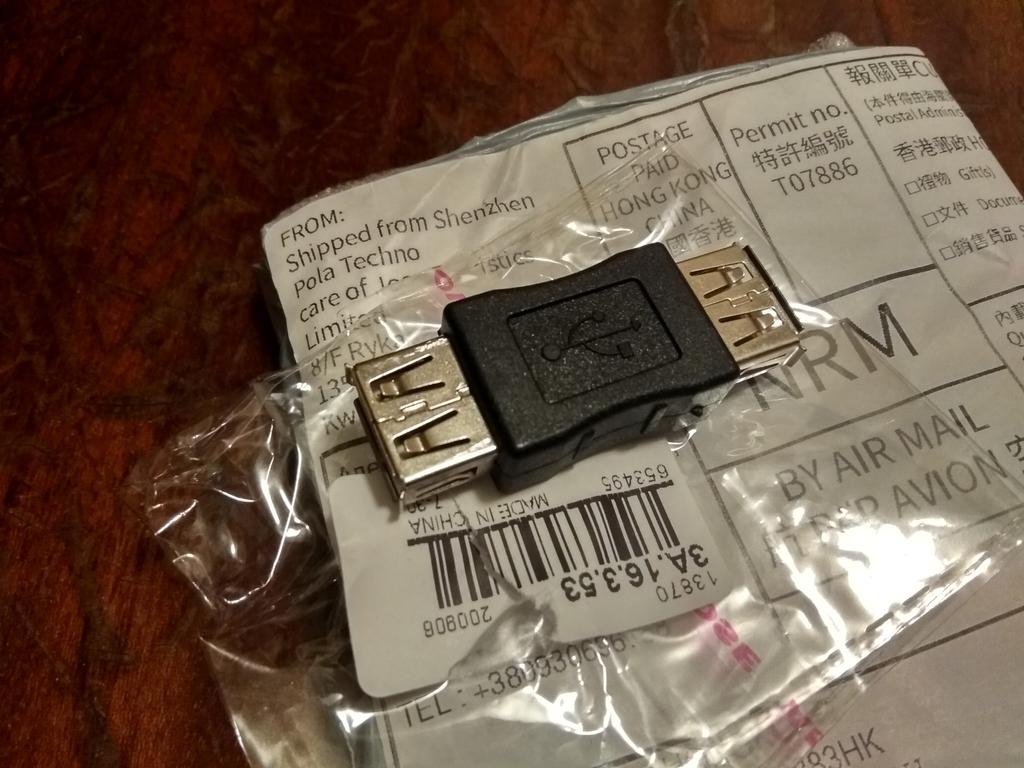 Получил где-то через10 - 12 дней. Качество исполнения на 5, разъёмы садятся плотно, как поведёт себя в деле посмотрим. Брал для подключения флешки к телефону.