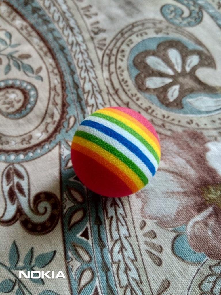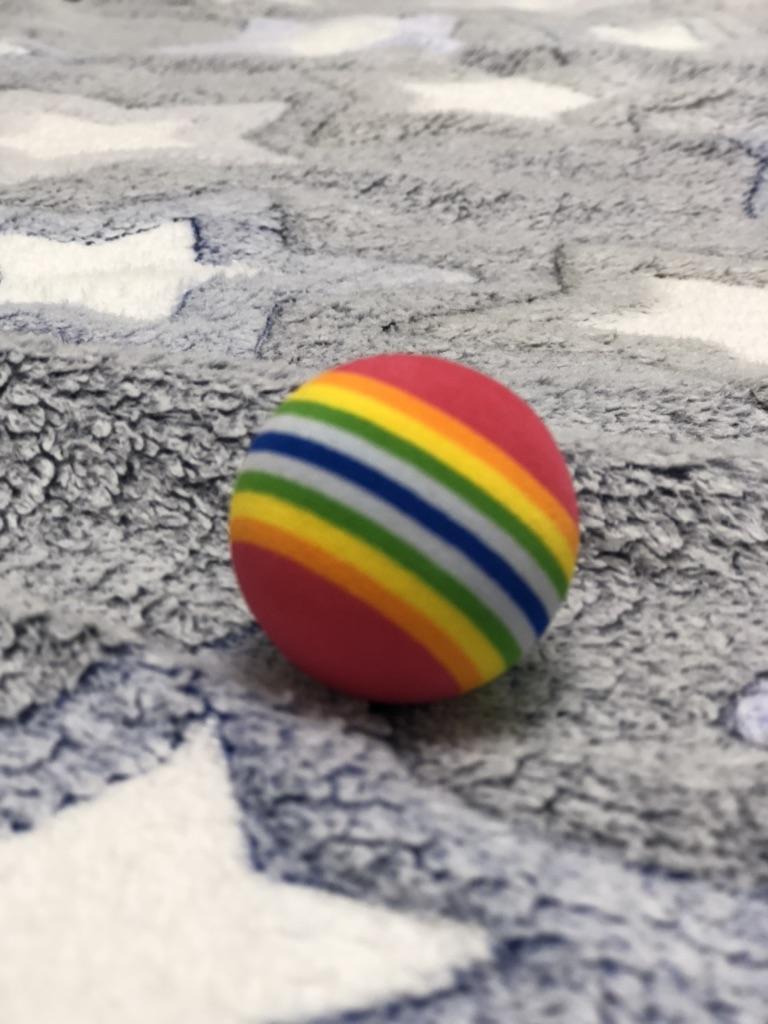 Эта радужка - подарок от Джума за покупку товара в 1000 рублей. Выбирала для котёнка, совсем маленького, как и этот мячик. Но малыш его не дождался... Мячик в диаметре примерно 3,5 см, практически невесомый. Предназначен не только для игр маленьких животных, но и для прорезывания зубов. Зубастики быстро сгрызут. Продавцу и Джуму спасибо! 🙏 Всем 👍🏻👍🏻👍🏻 покупок и быстрых доставок!