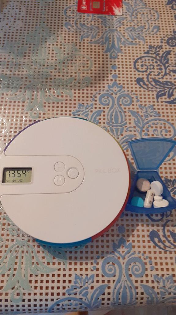 Посылка шла месяц и 2 дня, уведомление прислали в соцсети ВКонтакте! Спросили когда мне будет удобно встретить дома курьера👍, курьер доставил товар в оговорённые сроки! Таблетница очень удобна, особенно для таких склеротиков как я, постоянно забывала раньше принимать лекарства, которые нужно принимать каждый день наверное до конца жизни. Ну и для людей которые принимают витамины тоже вещь нужная. В круглой таблетнице 7 боксов куда идеально помещаются 4 среднего размера таблетки, но войдет еще столько же, боксы крепятся внутри хорошо, не выпадают. На таблетнице часы и 4 таймера для приема таблеток в разное время. Когда подходит время принимать лекарства она оповещает громко! Слышно по всей квартире! Как долго правда точно не знаю потомучто бегу выключить ее галопом! Так что принимать лекарства теперь не забываю! Работает от маленькой батарейки таблетки. Была упакована в коробку с инструкцией на китайском и английском языках, но я и без нее разобралась всего то 3 кнопки. Сверху на таблетнице защитная пленка. Дизайн мне нравиться, сама таблетница белая боксы яркие, разноцветные. Во весу легкая, вместе с лекарствами на неделю весит грамм 150. Очень удобная и нужная для меня и для многих вещь, рекомендую! В московских аптеках стоит дороже, да и наверно я болше чем в 20 аптеках уже пол года искала обычные есть в продаже а с таймером нет! И товар и продавца рекомендую! Спасибо Джум!