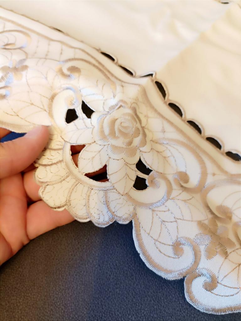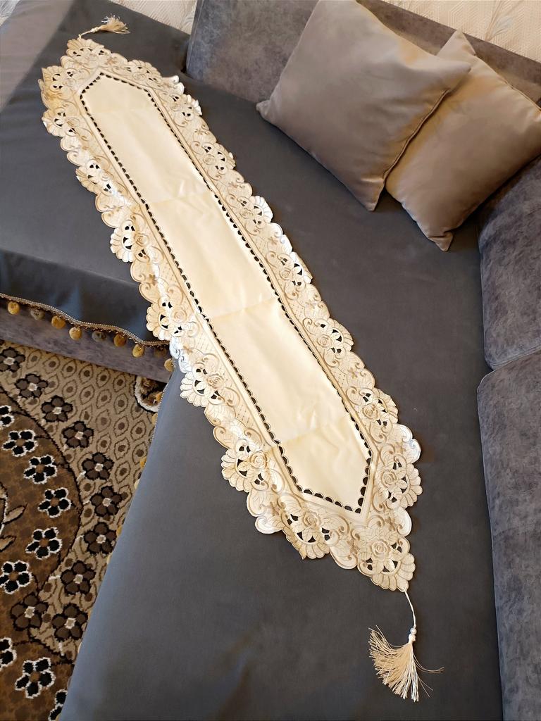 Очень понравилась дорожка, плотная,насыщенный цвет,прекрасная вышивка.Нигде не торчат нитки,нет постороннего запаха.доставка быстро и качественно,хорошо упакована,Огромное спасибо,буду ещё заказывать салфетки