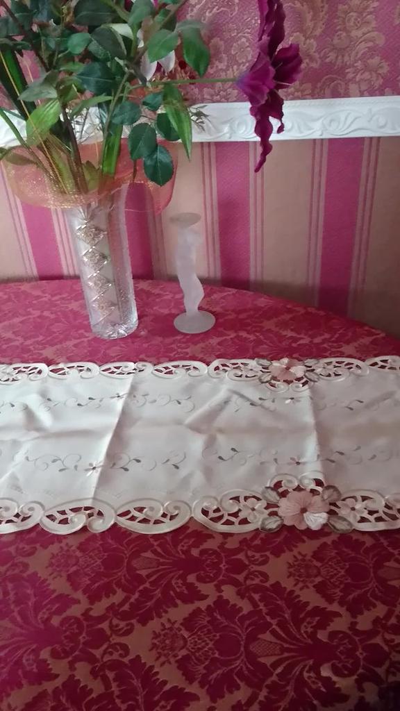❤️ КРАСИВАЯ ДЛИННАЯ САЛФЕТКА С ВЫШИВКОЙ, ДЛЯ УКРАШЕНИЯ ИНТЕРЬЕРА 💯👍 🙋♂️ Пришла вторая длинная и очень красивая кружевная салфетка с вышивкой - теперь для маминого зала, обновлённого ремонтом и классной мебелью. Такая винтажная, но в европейском классическом стиле салфетка. Понравился дизайн - кружева с вышивкой в виде цветов, кисточки на концах (которые идеально сочетаются с кисточками на шторах). Это своего рода длинная скатерть, которую мы постелили на тумбу под телевизор. ✈️ Доставка 30 дней, трек полностью отслеживался. Упаковали аккуратно и надёжно, доставили в целости и сохранности. У продавца было два размера, я выбрал подлиннее - 40*150 см. После получения померял - всё соответствует, и длина, и ширина. Ткань - полиэстер, хорошо гладится и стирается в машинке (желательно без отжима!). Выглядит салфетка просто великолепно, своих денег точно стоит! 🕵️♂️ Швы ровные, нитки нигде не торчат. Края хорошо обработаны - это важно, чтобы салфетка прослужила дольше. При распаковке были складки, разумеется. Но всё легко разгладилось утюгом с отпаривателем. Вышивка красивенная, выполнена аккуратно. Рисунок в русском стиле, как мы решили. Актуально, одновременно и современно, и винтажно. В меру ярко и нарядно, без перебора. 💁♂️ Кисточки на концах смотрятся роскошно, одновременно помогая салфетке правильно свисать. То есть концы не торчат в разные стороны, а расположены строго вниз. Салфетка прекрасно вписалась в интерьер розовой комнаты - на фото это видно, я думаю. Конечно, рекомендую к покупке всем желающим!