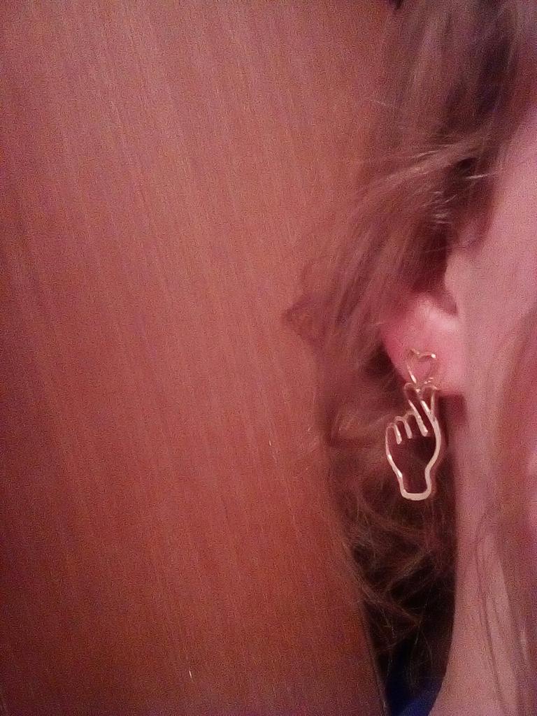 Оригинальные серьги в виде руки с сердечком