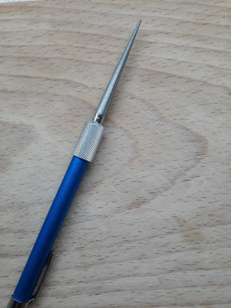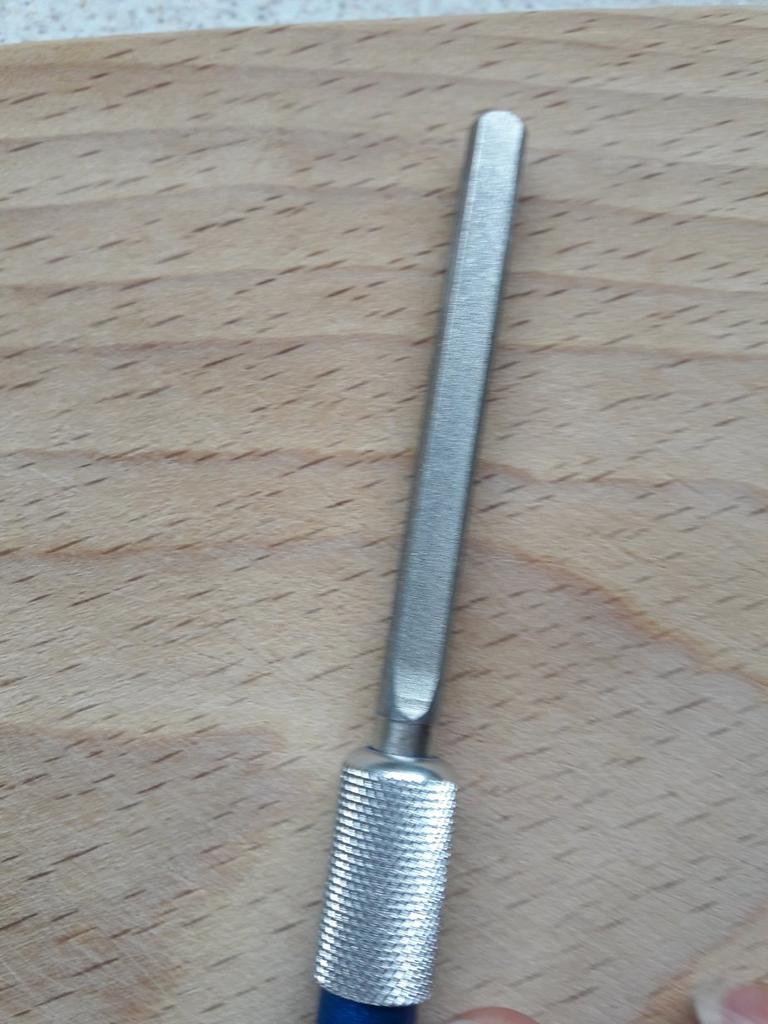 Друзья,всем доброго времени суток👋👋👋! Получила алмазную заточку(напильник).Очень хорошая задумка двусторонняя заточка👌,с одной стороны конусообразная,а с другой утолщённая.И всё это складывается как обычная авторучка😉👍.Пока проверила всё работает,то есть меняется местами и складывается обратно в "авторучку".Я купила эти напильники для доделывания деревянной доски для разделки продуктов.У неё кромка очень плохо обработанна,есть заусенцы.И вот я с помощью этого напильника буду править доску🤔😉.Посмотрим как получится. Единственно только чехол для напильников ну очень маленький и совершенно не такой как на фото😞. Кому необходима такая вещь,рекомендую однозначно. Продавцу спасибо. Всем МИРА,ДОБРА И УДАЧИ 🙋♀️🙋♀️🙋♀️💗!!!