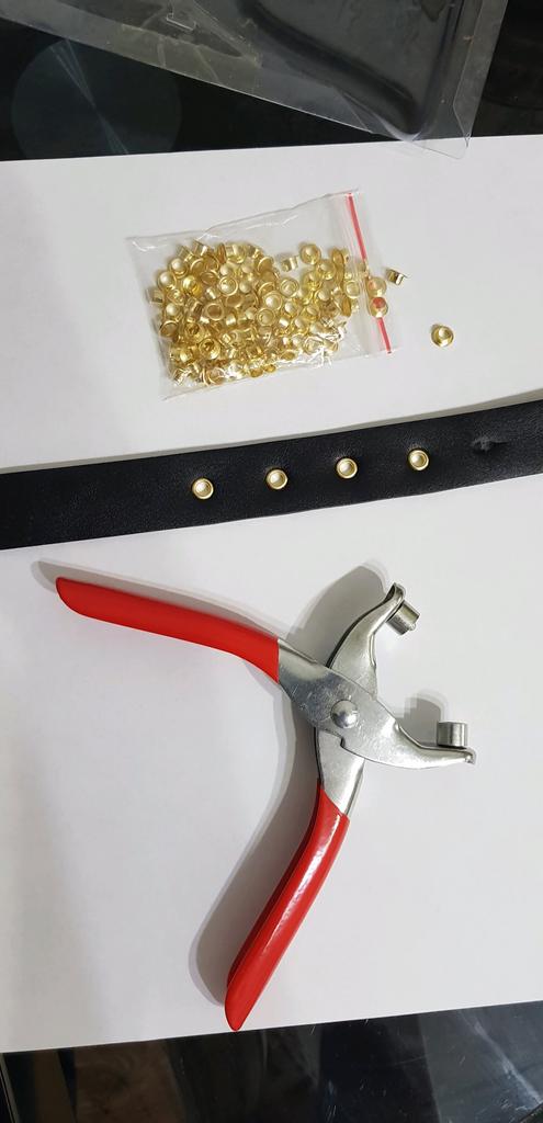 Не плохой дырокольчик, но как в описании 100 шт. Клёпок, так нет. Клёпок всего 65шт. А так не плохо. Рекомендую. Опробовали в деле. Для ремней не подходит совсем. Очень мягкий алюминий, гнётся без усилий. Клёпки только для шнурков.