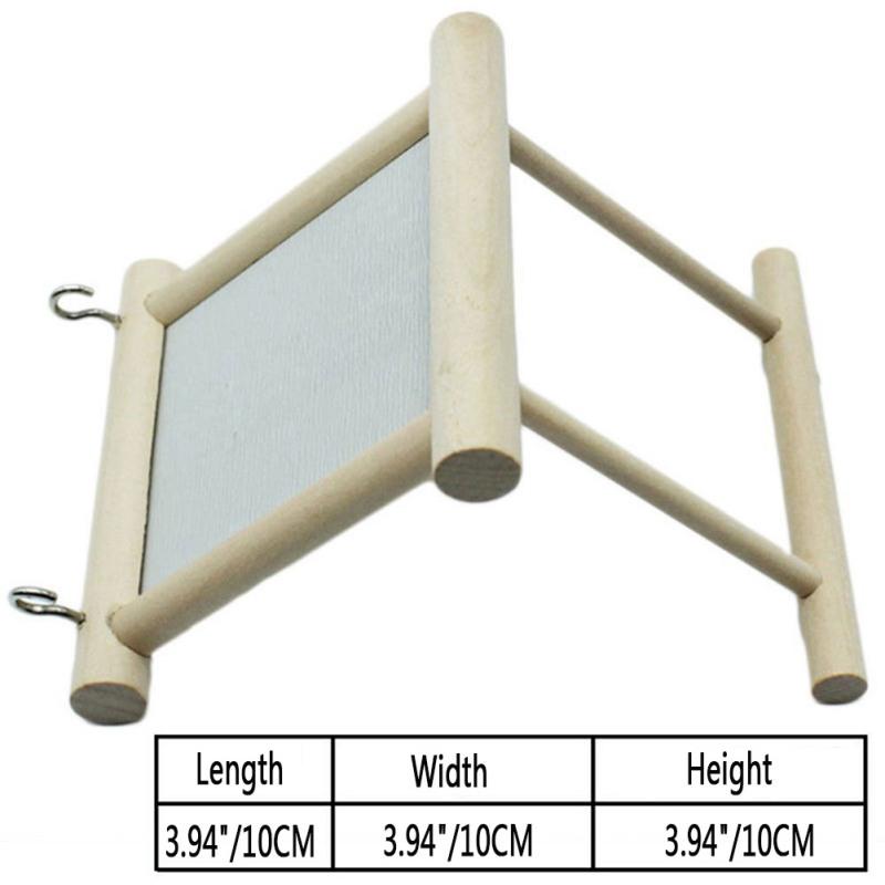 Подвесная деревянная игрушка с зеркалом в клетку попугаю