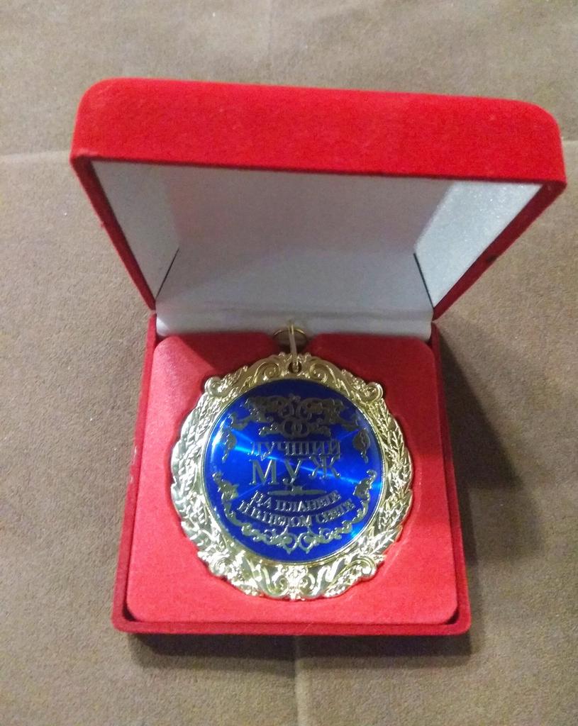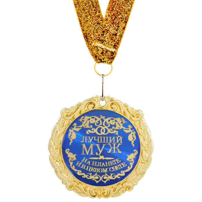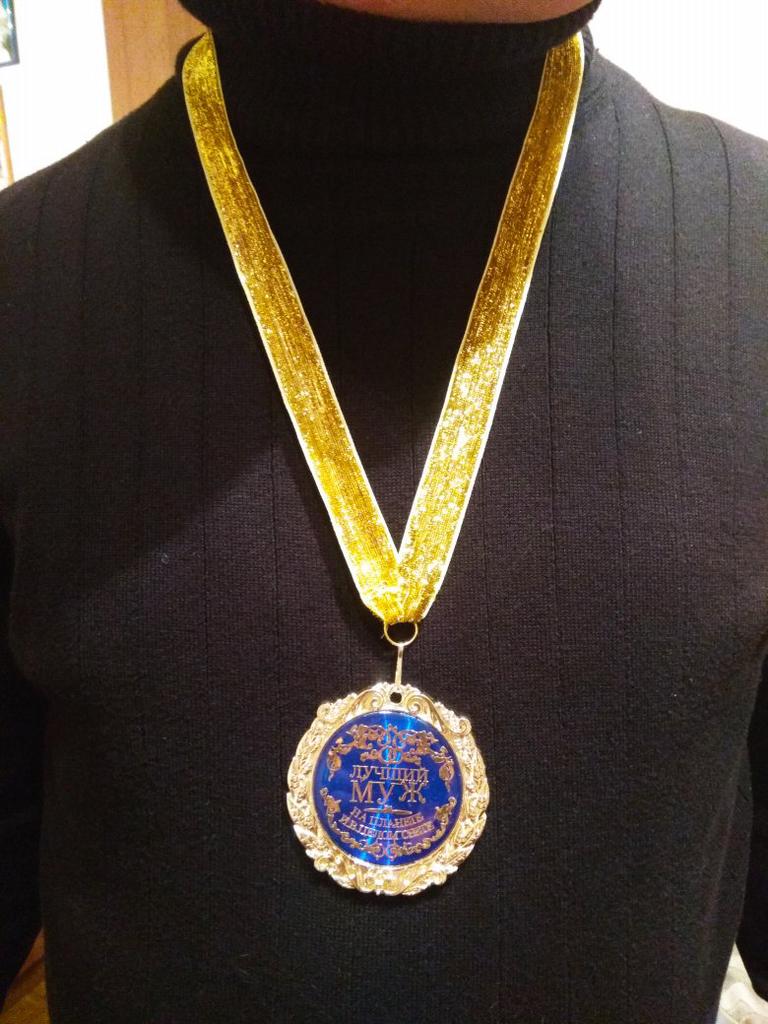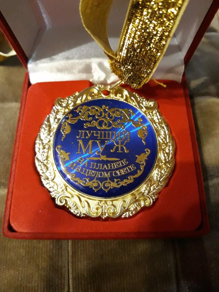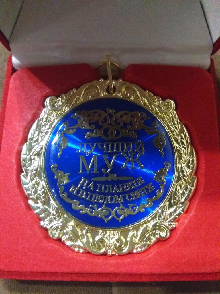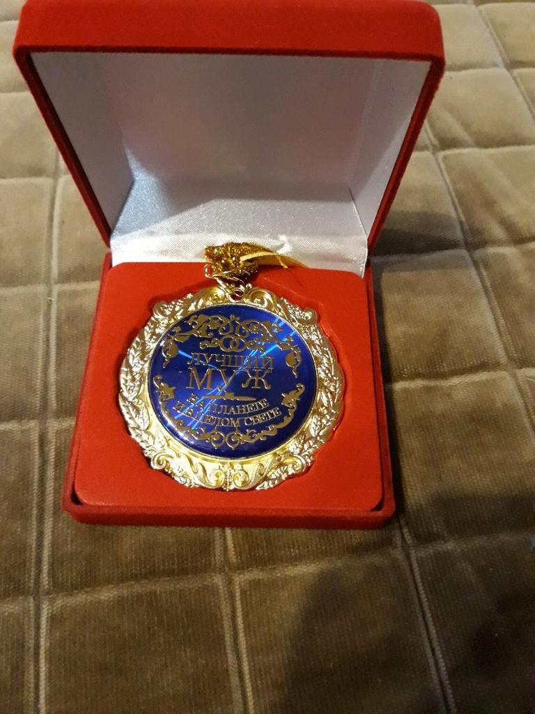 Подарок мужчине-медаль "Лучший муж" в праздничной упаковке