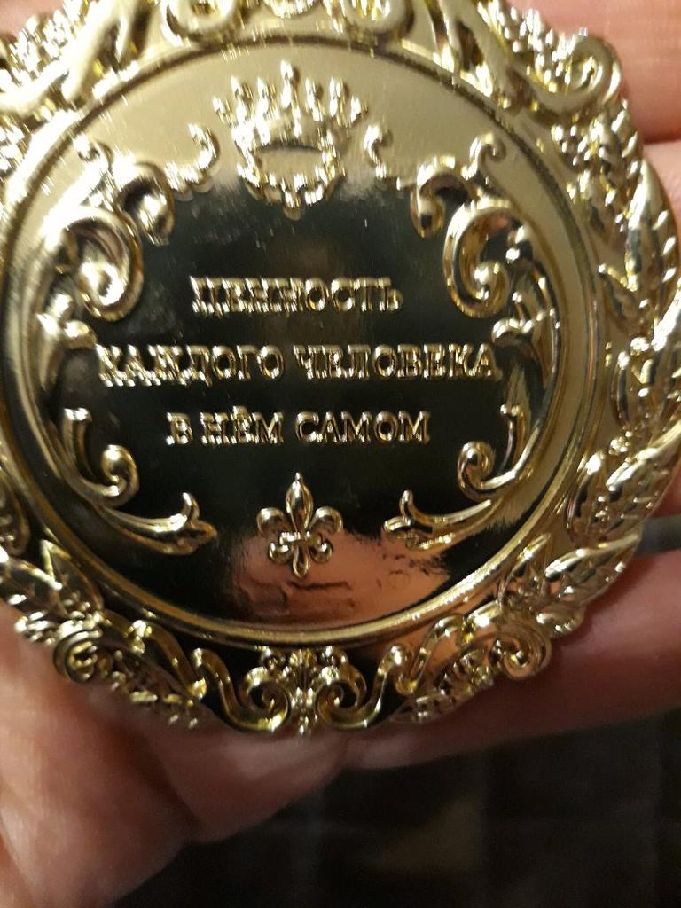 Медаль пришла без задержек, без брака, все в отличном состоянии. Мне очень понравилось, что продавец положил ее в красную коробочку, смотрится ну очень представительно, на подарок просто идеально, огромное ему за это спасибо. Я всем очень довольна, продавца однозначно рекомендую, и спасибо за доставку.