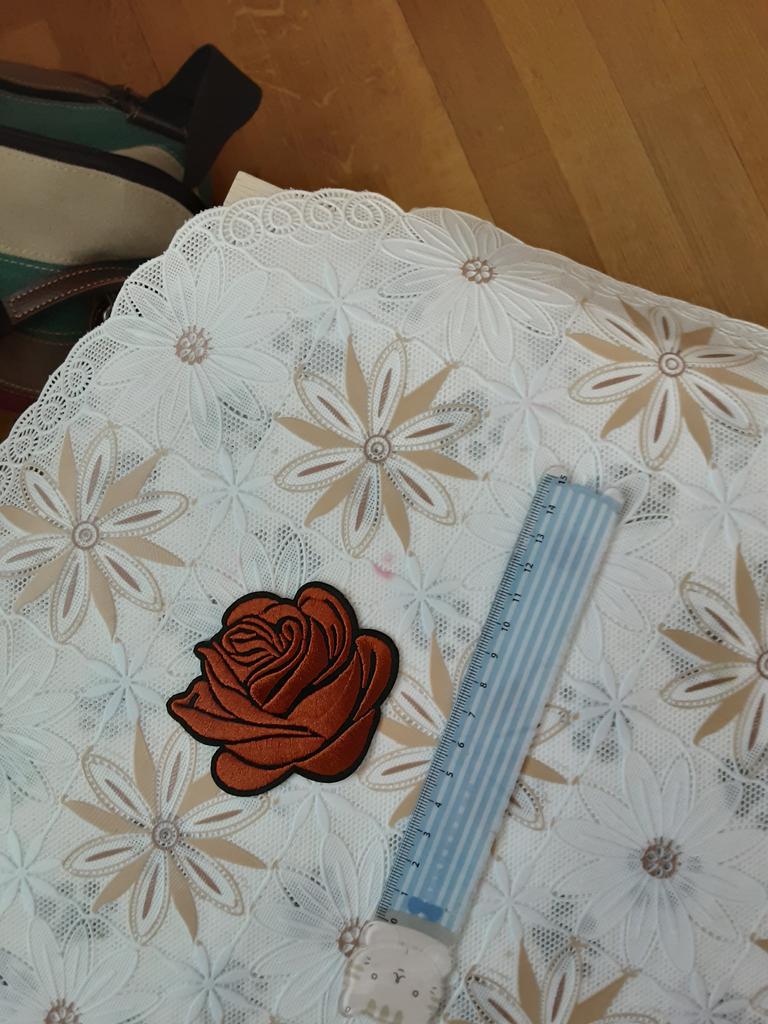 Розочка хорошенькая. Хотела наклеить на сумку чтобы закрыть потёртости. Жаль, но мне оказалась маловата.