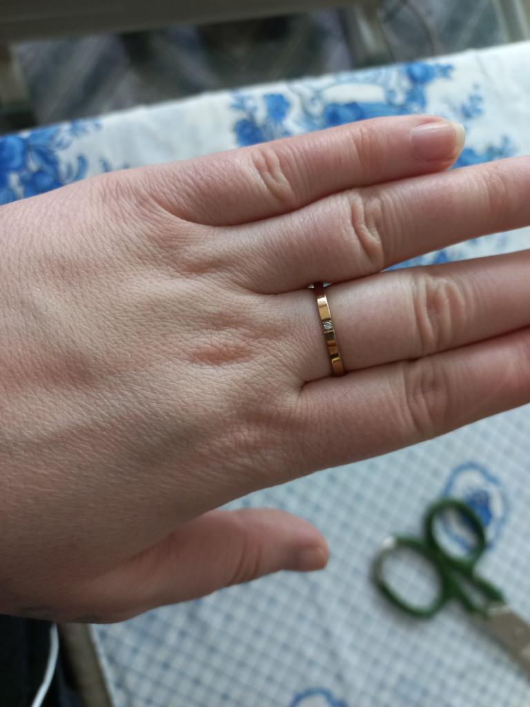 Симпатичное колечко.по отзывам вроде не облазит,будем проверять.на палец 17,5 подошёл размер 8.от золота не отличить Дополняю:спустя неделю после постоянного ношения ничего не изменилось,камень на месте,покрытие не слезло,хотя я иногда дома могу работать с химией без перчаток,кольцу хоть бы что. Вторую неделю ношу-также без изменений,есть только пара царапинок на кольце со стороны ладони.Я под большим впечатлением,что за такие деньги можно найти неплохую по качеству бижутерию. Дополняю ещё раз:сегодня 23 марта ,до сих пор ношу не снимая,кольцо практически не изменилось в цвете,палец не чернеет,не зеленеет.(последние 2 фото)