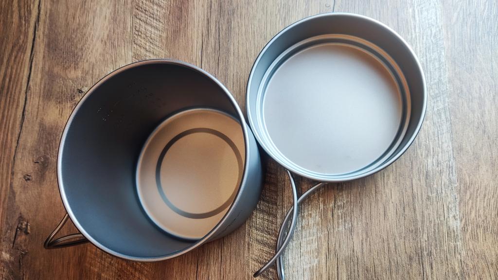 Набор приехал быстро,шел около двух недель. Это действительно титан. Сделан крепко и надежно. Есть мерная шкала. Внутри краёв катаются какие то частицы,на функционал это не влияет.