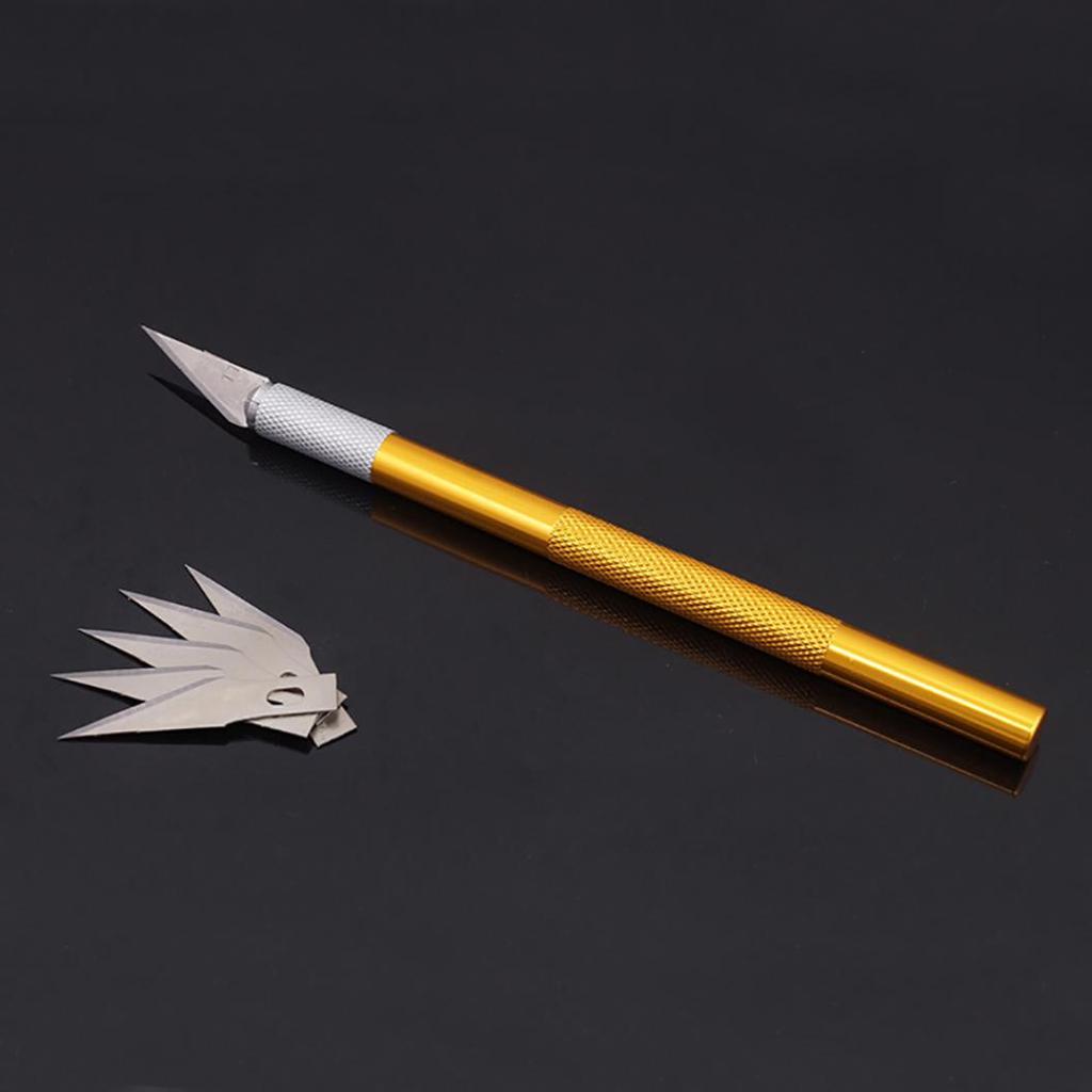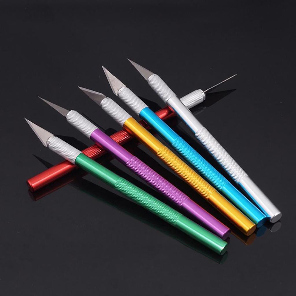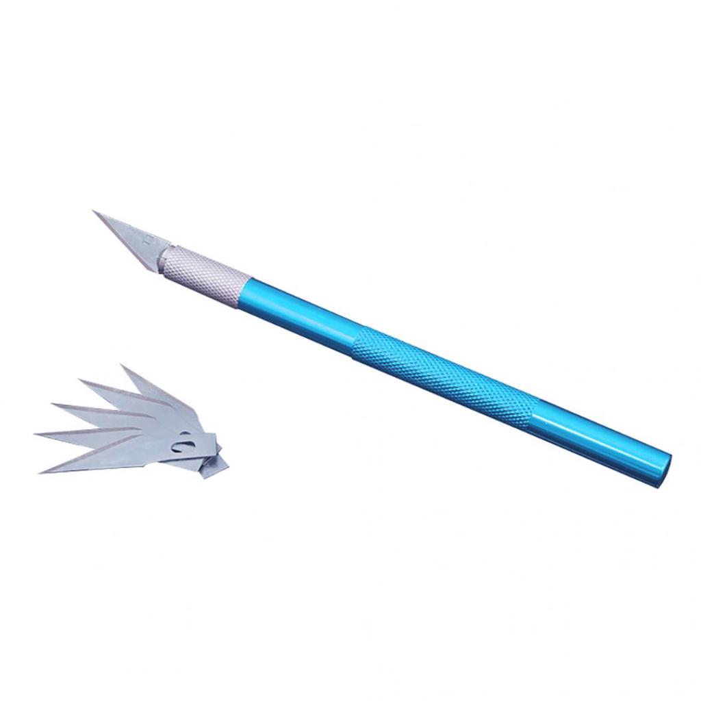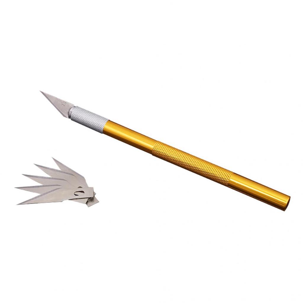 Канцелярская алюминиевая ручка-скальпель для резки бумаги + 5 лезвий, общая длина: 14,5см
