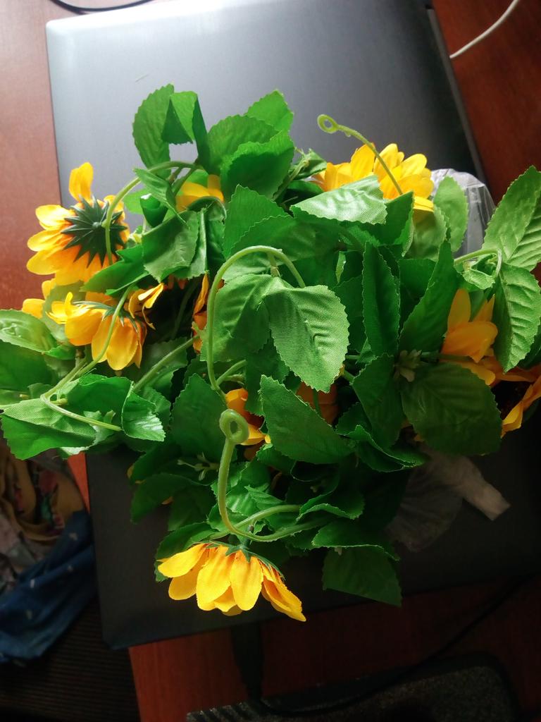 Упакован хорошо, товар пришёл чучуть помятый, нужно время чтоб принял форму или попробую говорят над паром подержать. Цветки подсолнуха выглядят почти как настоящие только в уменьшеном размере. Спасибо продавцу и joom