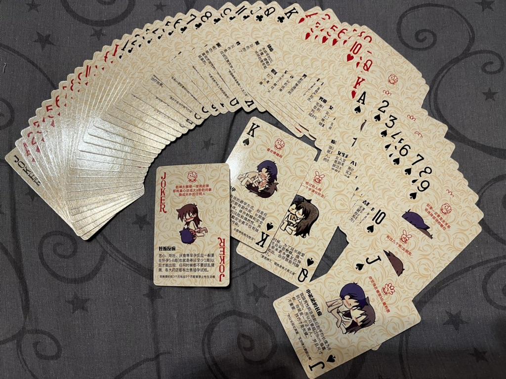 Пришла коробка повреждённая, карты отличные, позы не повторяются. Можно придумать разные игры. В колоде карт хватит на покер, два джокера, от короля до туза. Большинство текста на китайском.