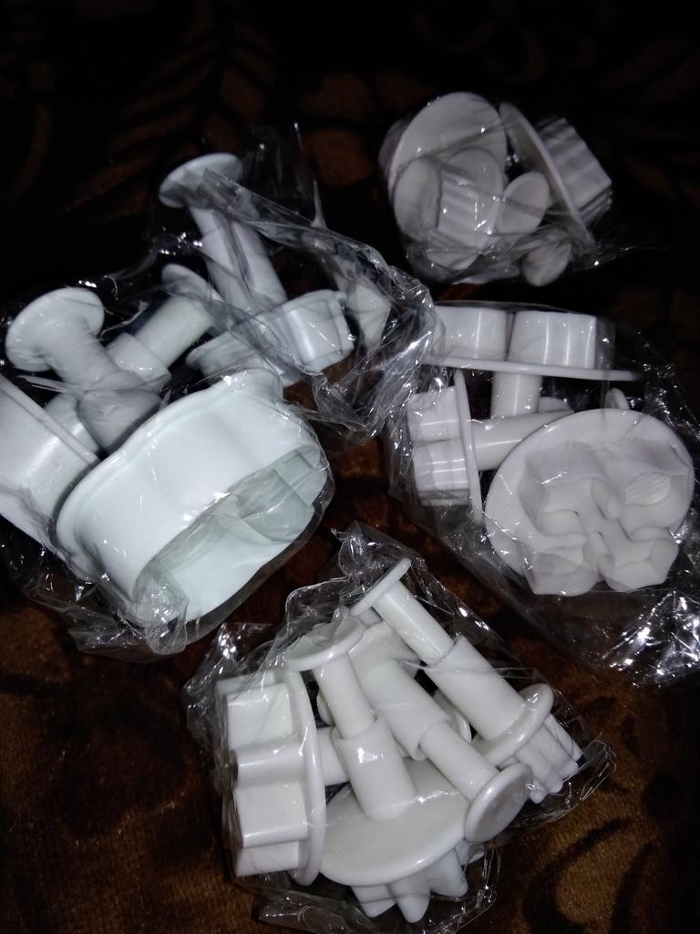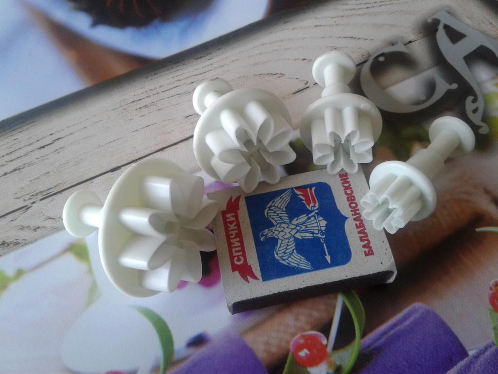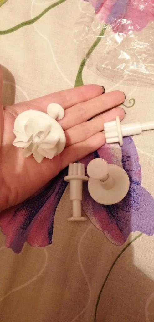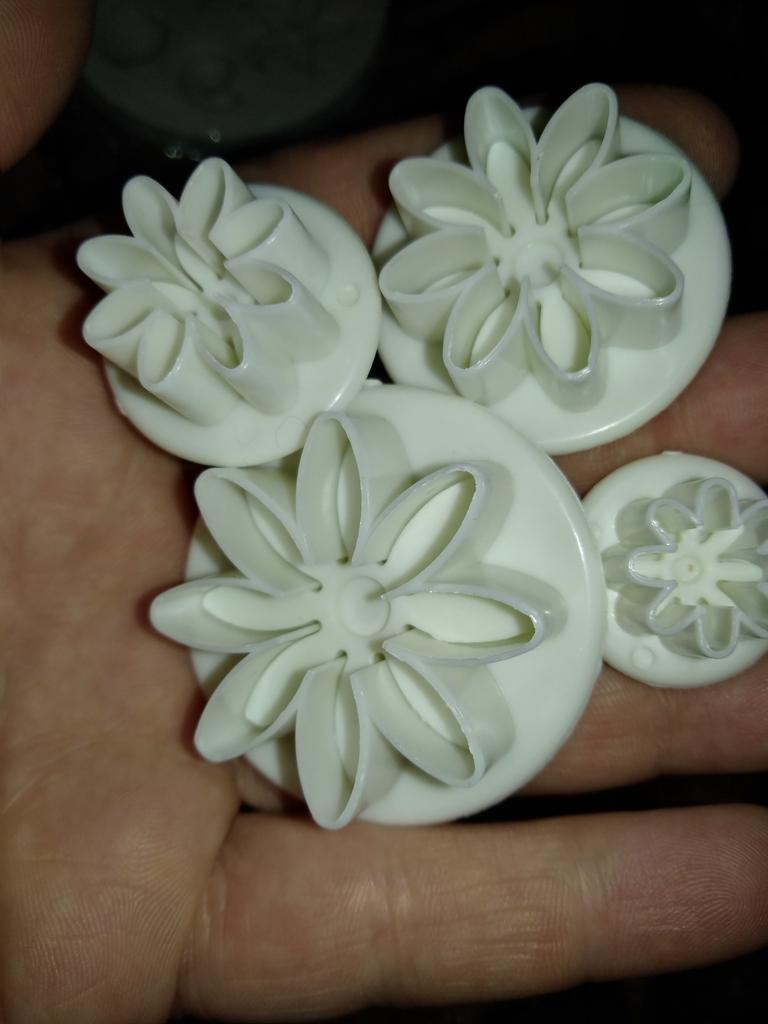 Формочки цветочки я брала для теста , на деле маловаты, чуть побольше бы, но для мастики они в самый раз. Сделаны очень хорошо, крепкая пластмасса, хороша тем что есть поршень на пружинке что бы выдавливать цветочек из формочки, очень удобно. Продавца рекомендую.